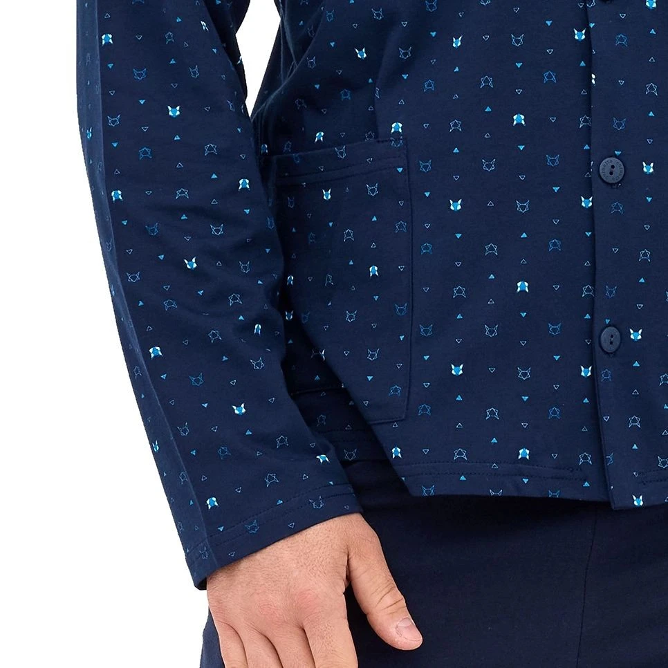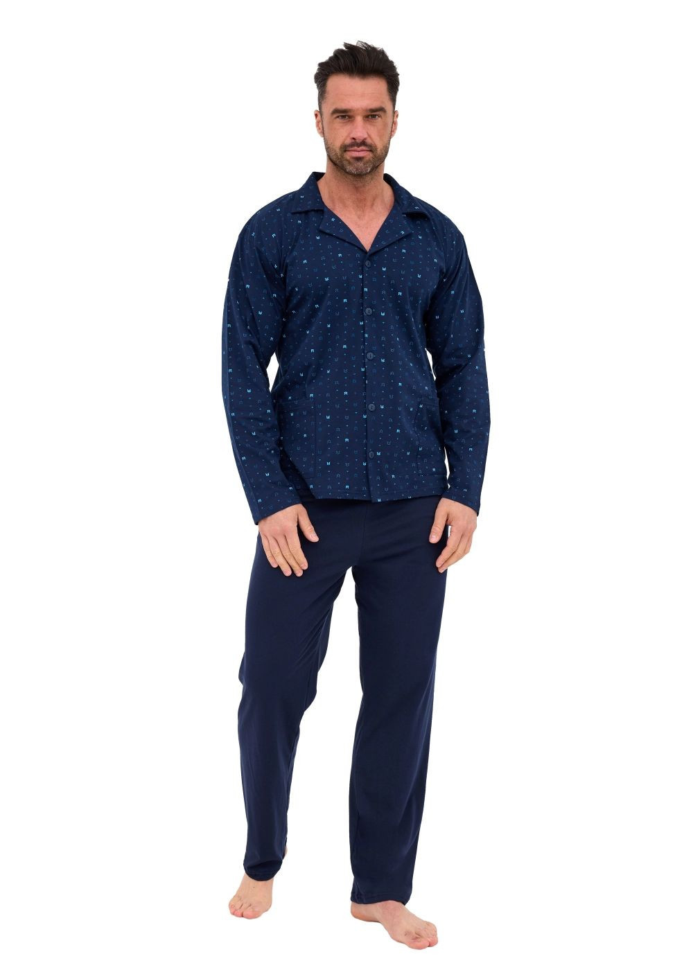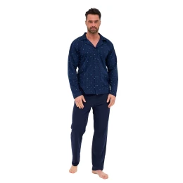 Pánské pyžamo 114/80 CORNETTE - z vysoce jakostní bavlny - vzorovaná košile s dlouhými rukávy a kapsami - zapínání na knoflíky - pohodlné tmavě modré dlouhé kalhoty