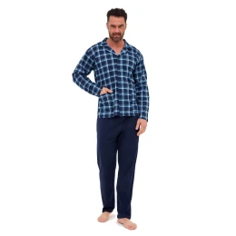 Pánské pyžamo 114/81 CORNETTE - z vysoce jakostní bavlny - károvaná košile s dlouhými rukávy a kapsami - zapínání na knoflíky - pohodlné tmavě modré dlouhé kalhoty