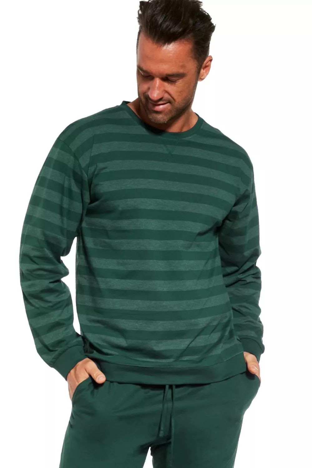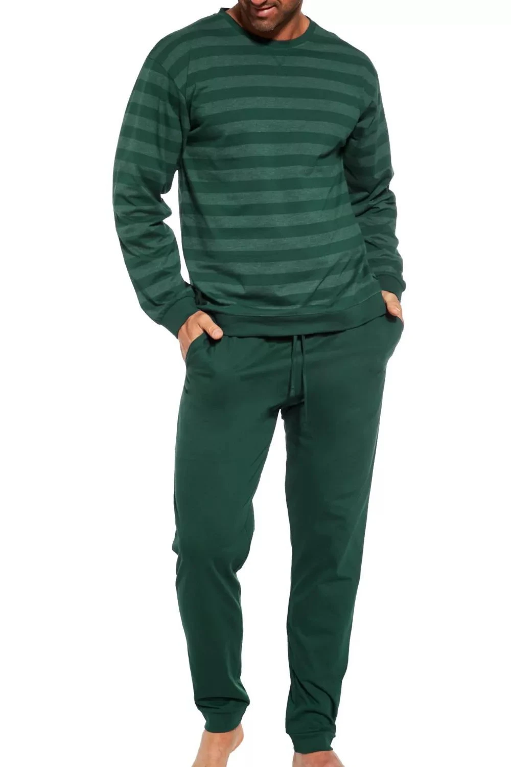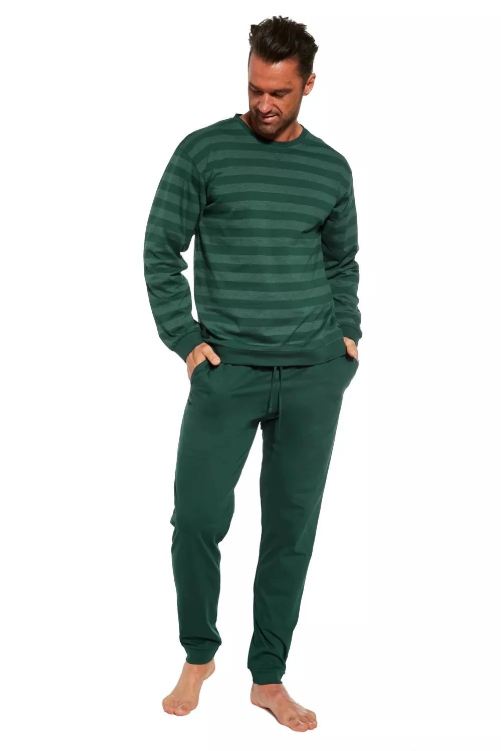 Pánské pyžamo 117/259 Loose CORNETTE - z vysoce jakostní bavlny - zelené tričko s dlouhými rukávy - zdobené pruhy - pohodlné jednobarevné dlouhé kalhoty s kapsami