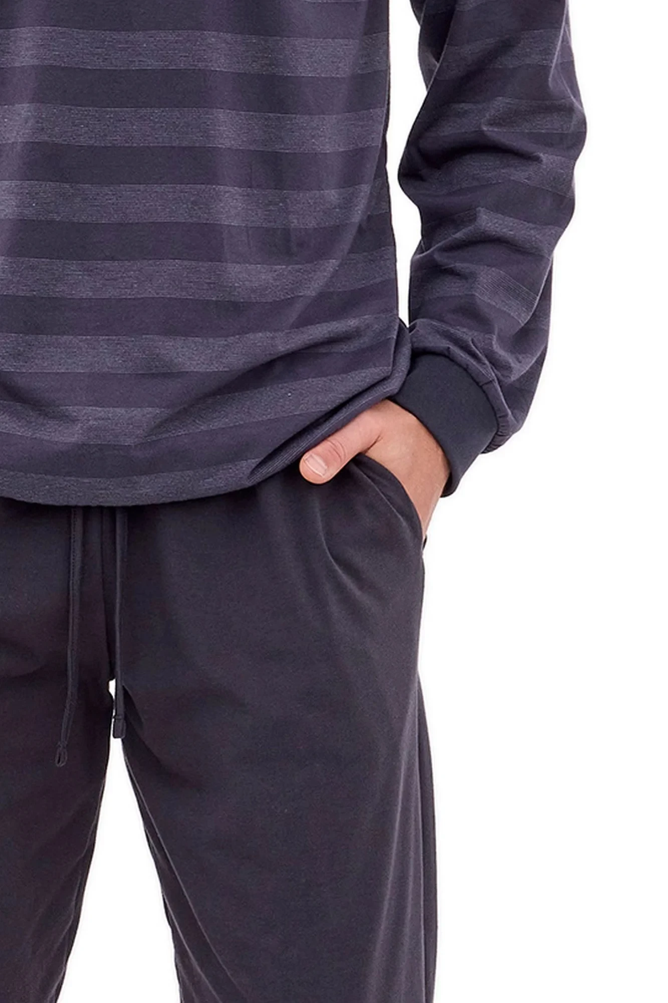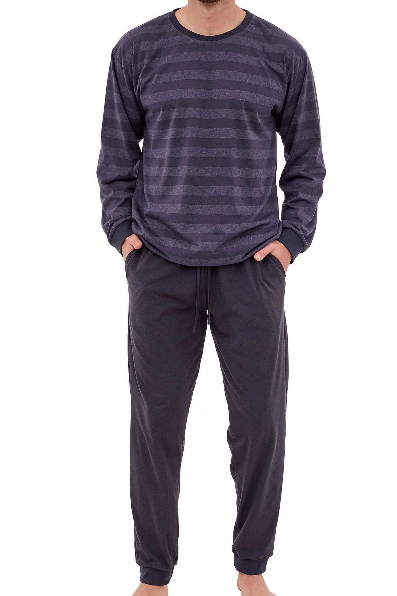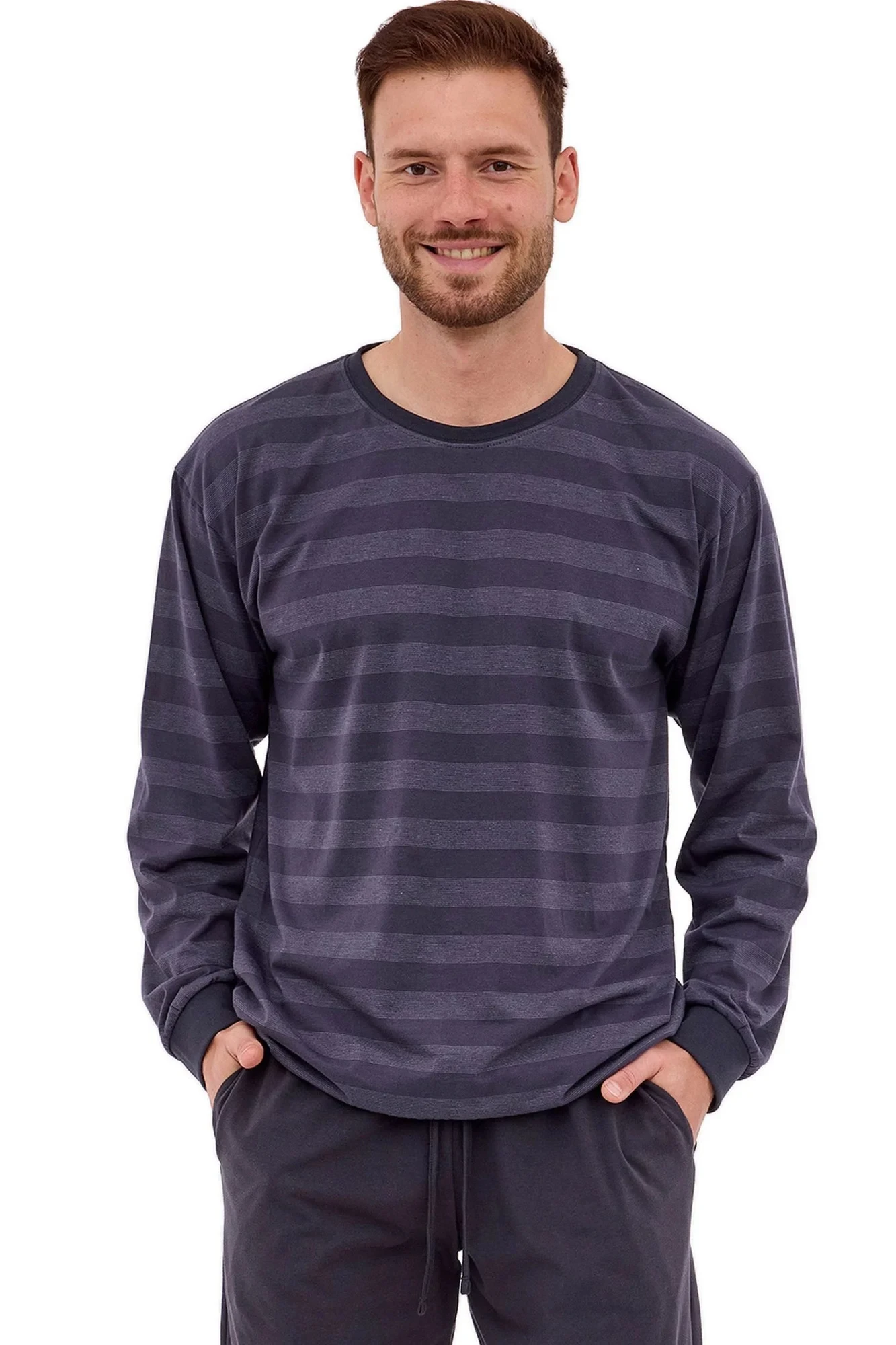 Pánské pyžamo 117/280 Loose CORNETTE - z vysoce jakostní bavlny - grafitové tričko s dlouhými rukávy - zdobené pruhy - pohodlné jednobarevné dlouhé kalhoty s kapsami