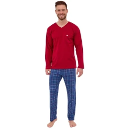Pánské pyžamo 122/262 Gordon plus CORNETTE - z vysoce jakostní bavlny - vínové tričko s dlouhými rukávy - na přední straně zdobené kapsičkou - pohodlné vzorované dlouhé kalhoty