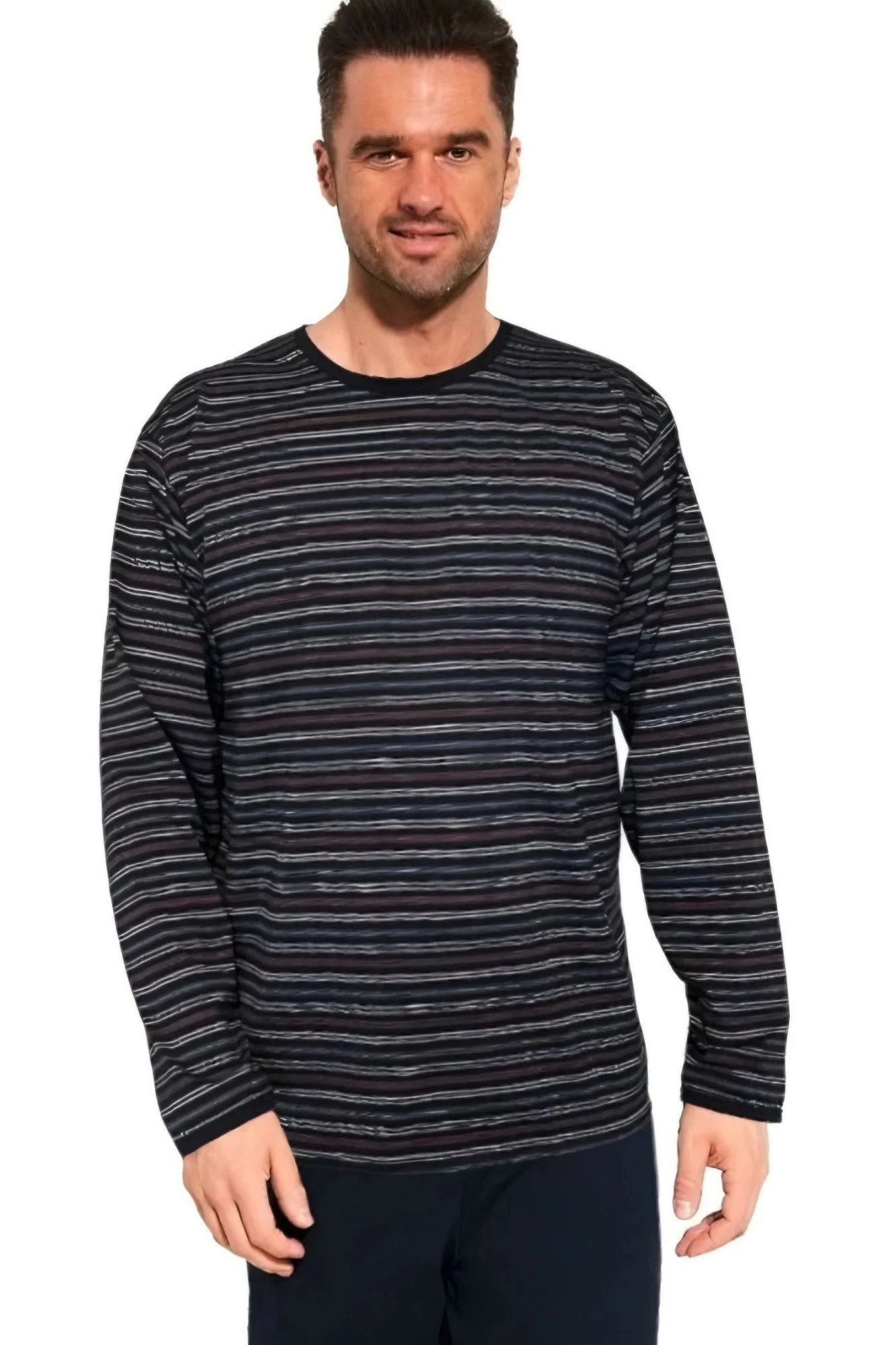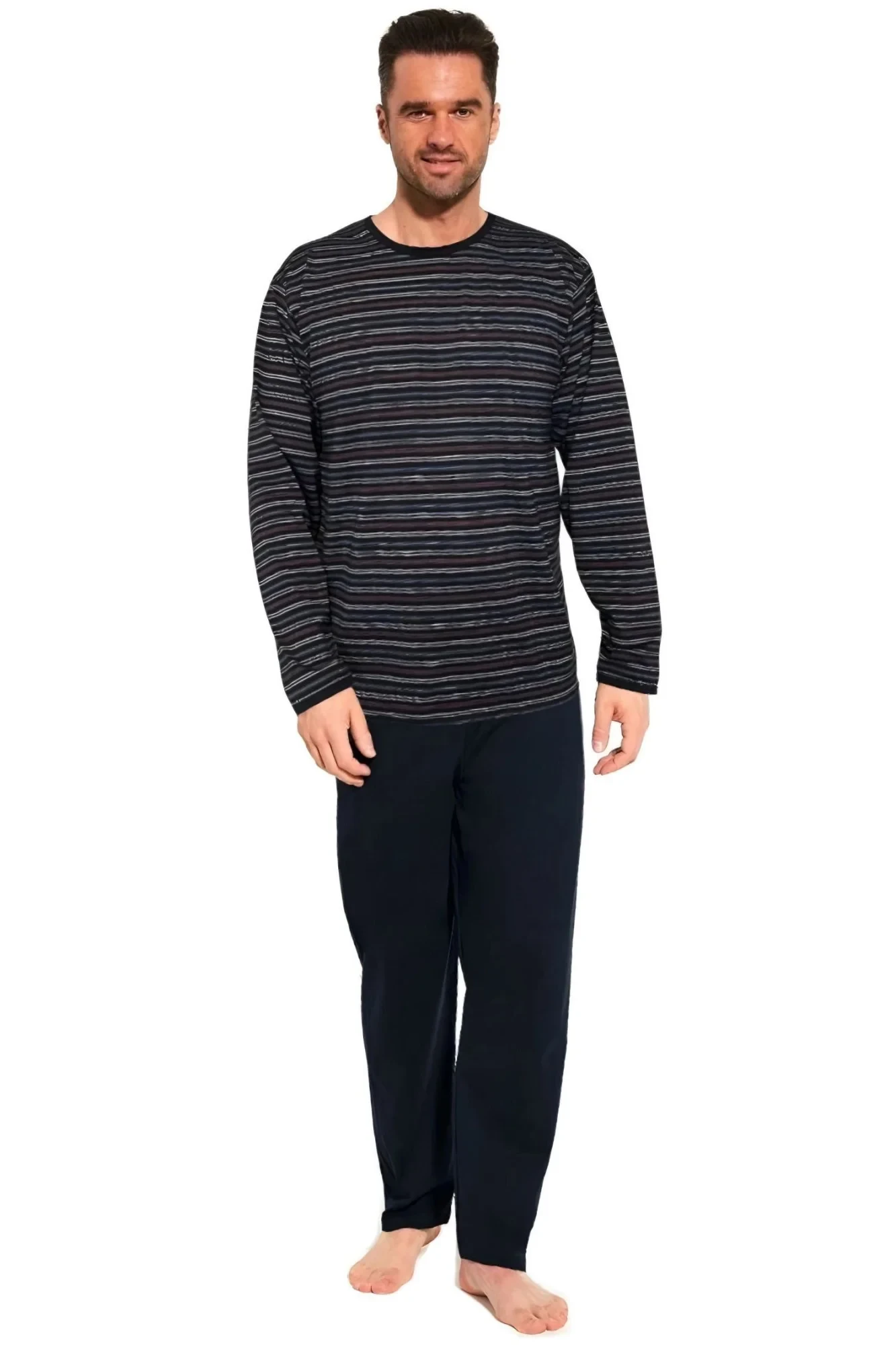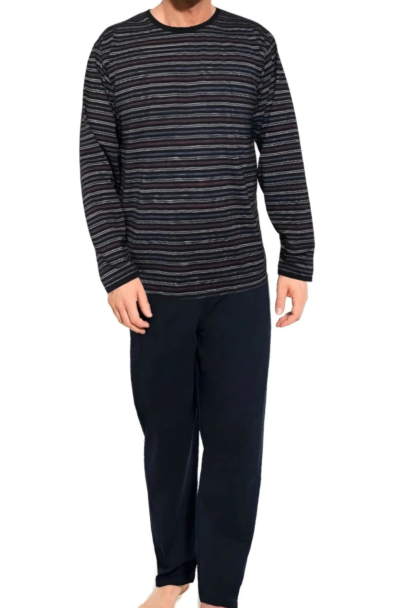 Pánské pyžamo 138/46 Various CORNETTE - z vysoce jakostní bavlny - pruhované tričko s dlouhými rukávy - pohodlné jednobarevné dlouhé kalhoty