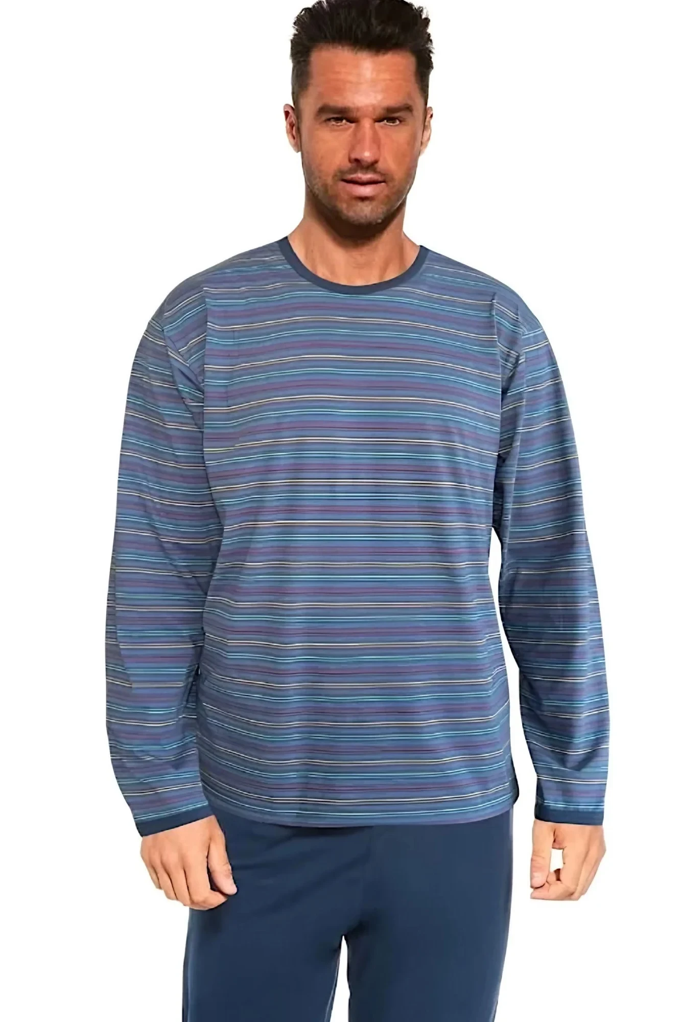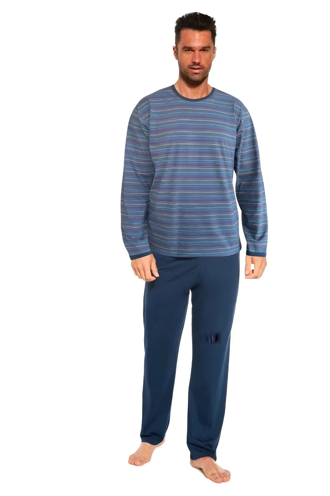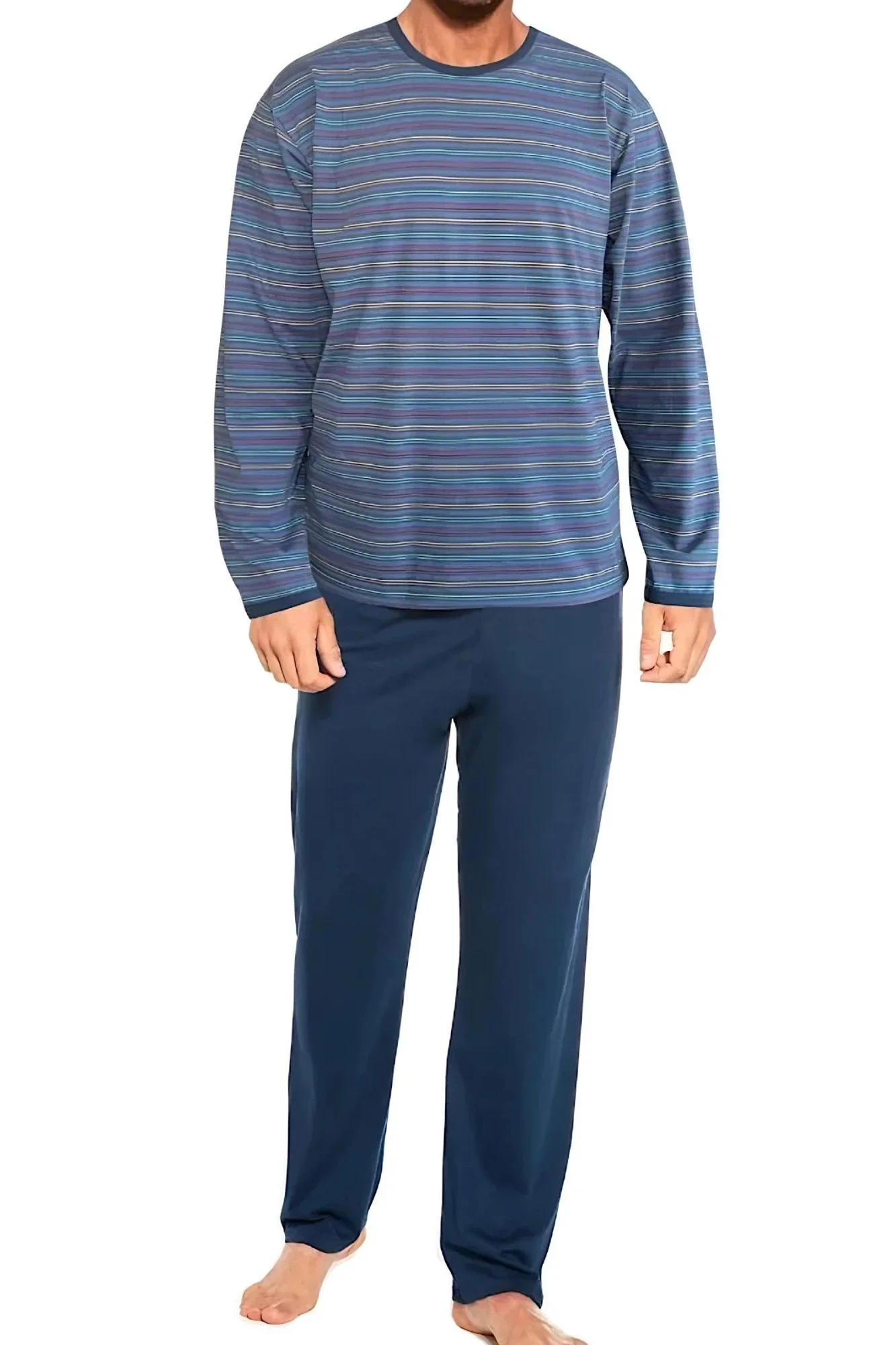 Pánské pyžamo 138/47 Various CORNETTE - z vysoce jakostní bavlny - pruhované tričko s dlouhými rukávy - pohodlné jednobarevné dlouhé kalhoty