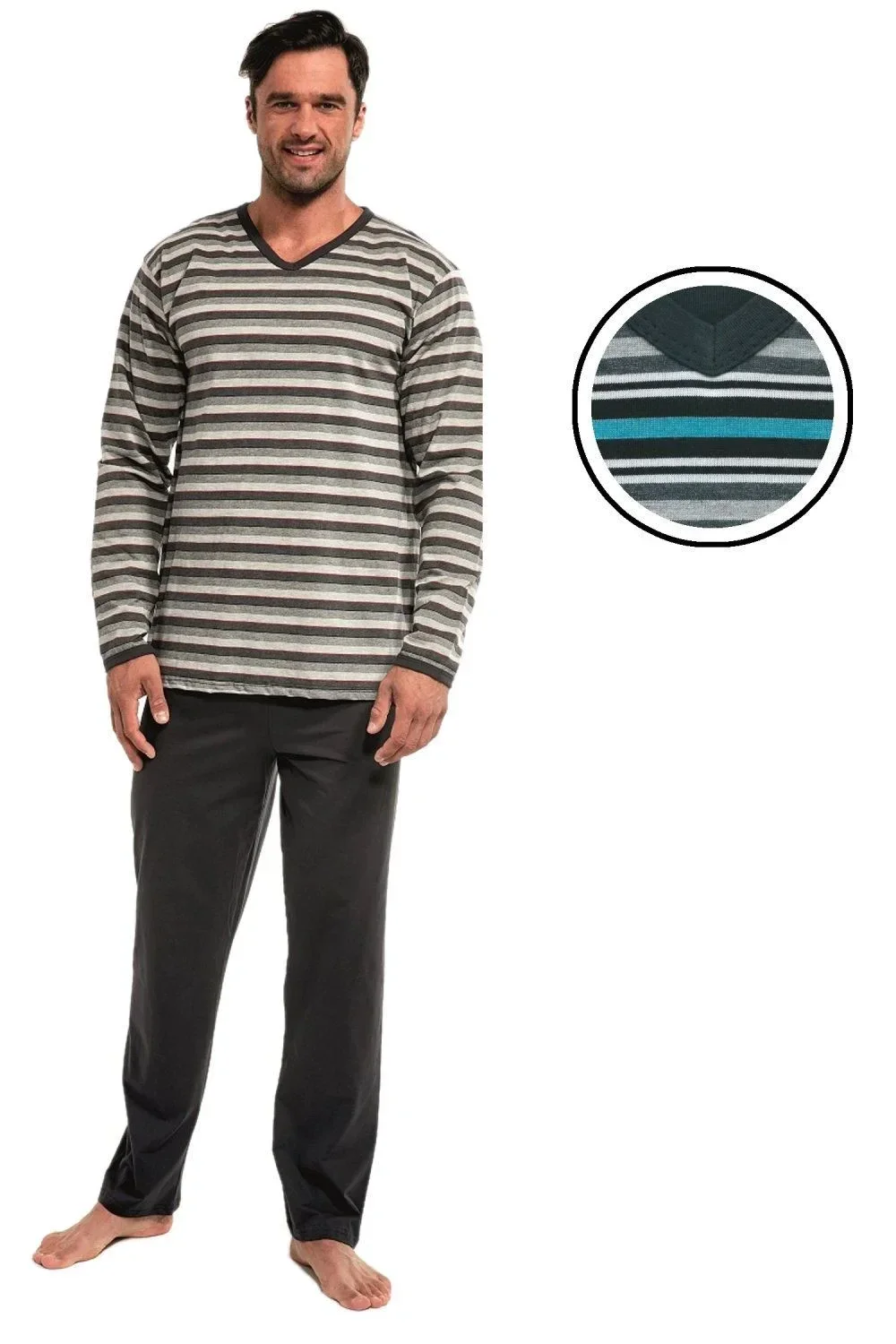 Pánské pyžamo 139/24 Various Cornette - je vyrobené z velmi kvalitní bavlny - pruhované tričko s dlouhými rukávy - pohodlné jednobarevné dlouhé kalhoty