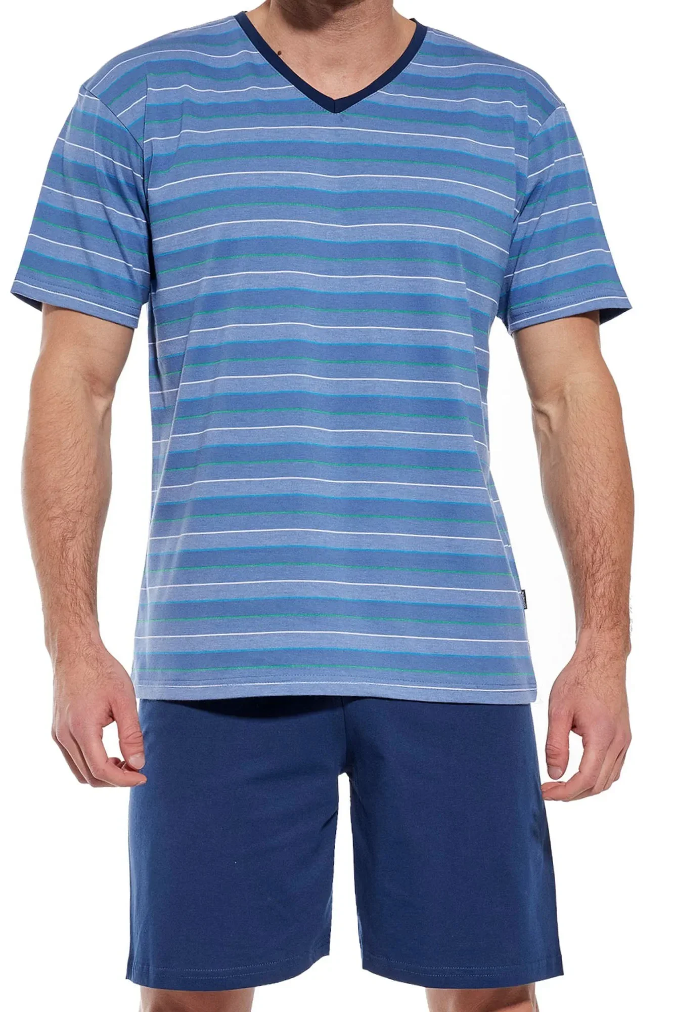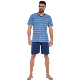 Pánské pyžamo 330/40 Various CORNETTE - světle modrá barva - z velmi kvalitní bavlny - pruhované tričko s krátkými rukávy - jednobarevné kraťasy