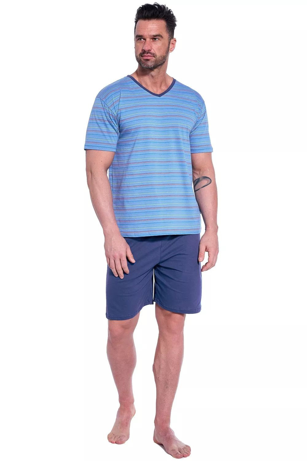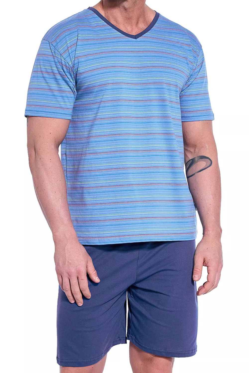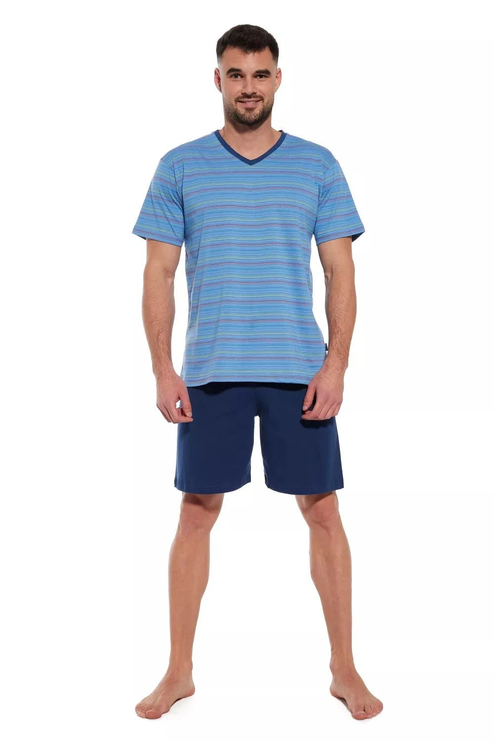 Pánské pyžamo 330/42 Various plus CORNETTE - světle modrá barva - z velmi kvalitní bavlny - pruhované tričko s krátkými rukávy - jednobarevné kraťasy
