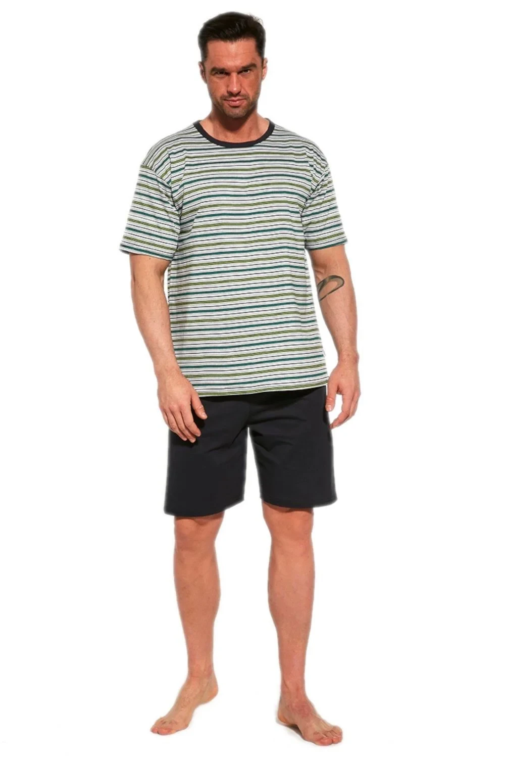 Pánské pyžamo 338/28 Cornette - je vyrobené z velmi kvalitní bavlny - pruhované tričko s krátkými rukávy - jednobarevné kraťasy