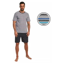 Pánské pyžamo 338/40 Various CORNETTE - šedá barva - z velmi kvalitní bavlny - pruhované triko s krátkými rukávy - pohodlné jednobarevné kraťasy