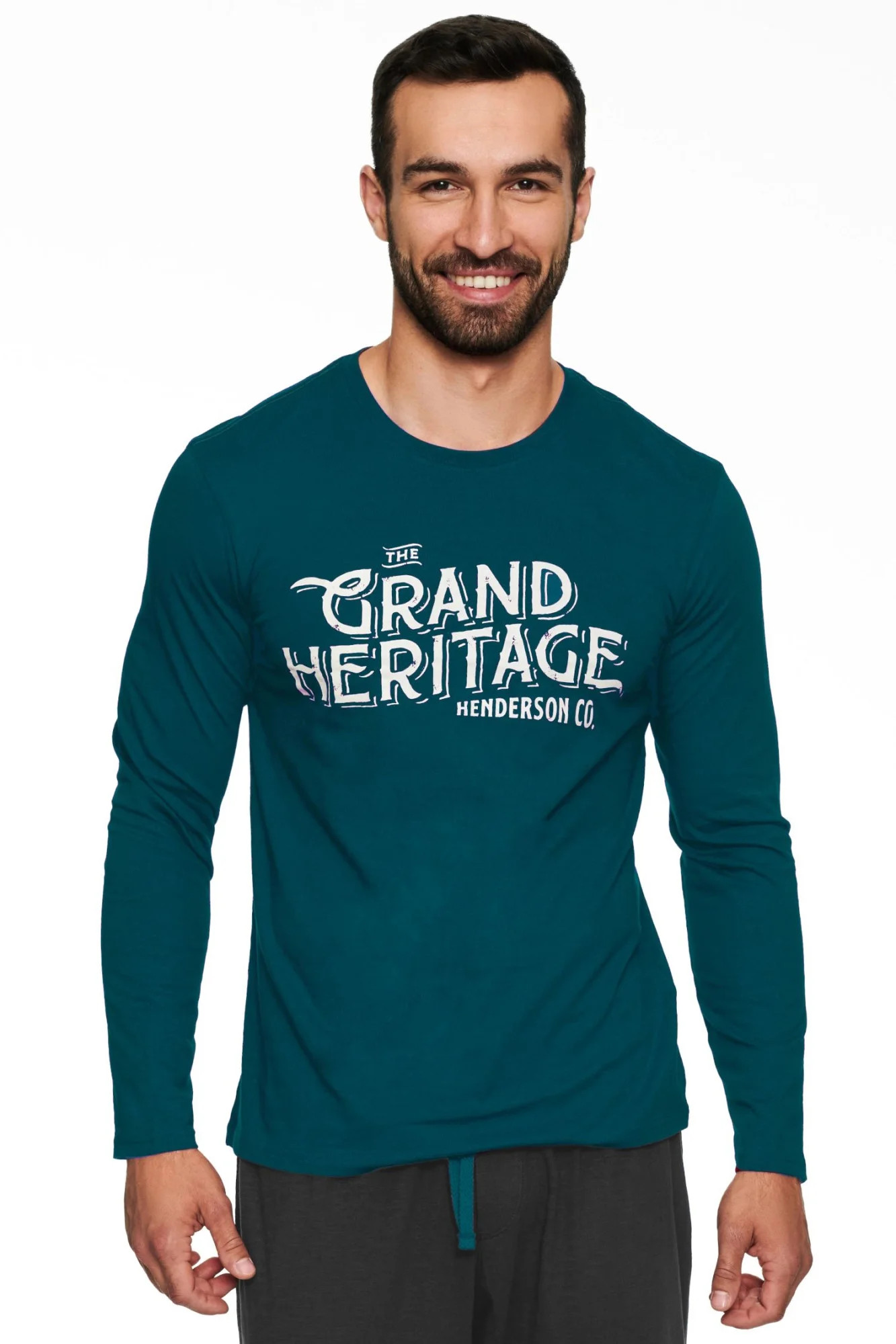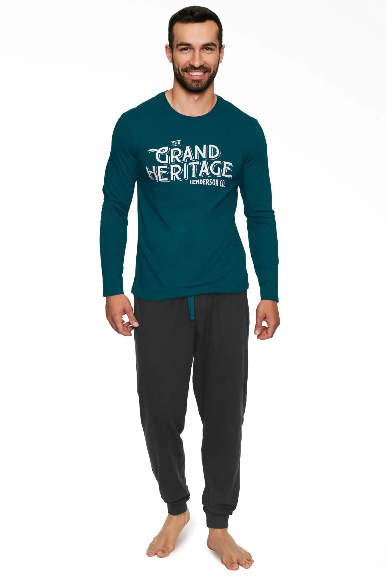 Pánské pyžamo 40021 Brand turquise HENDERSON - vyrobené z velmi kvalitní a příjemné bavlny - tyrkysové tričko s dlouhými rukávy - na přední straně ozdobené barevným potiskem - dlouhé jednobarevné kalhoty