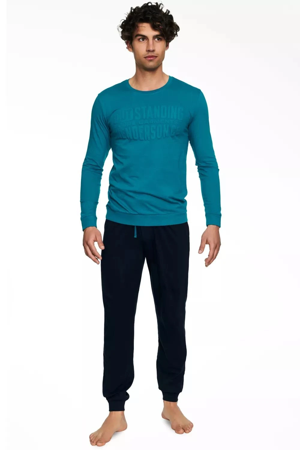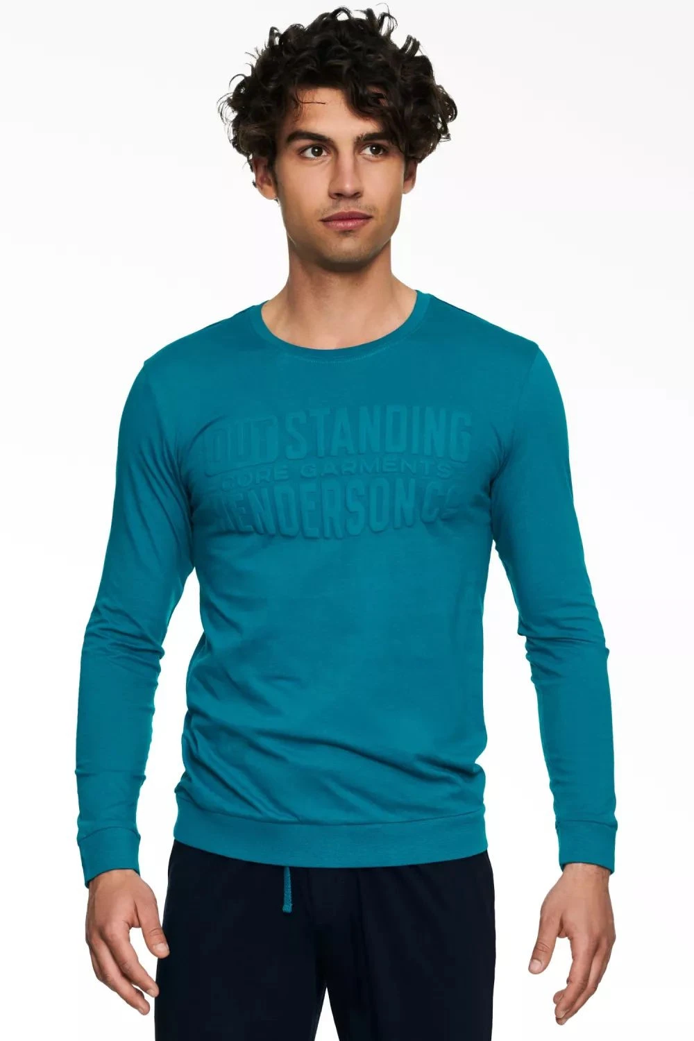 Pánské pyžamo 40040 Badge turquise HENDERSON - vyrobené z velmi kvalitní a příjemné bavlny - tyrkysové tričko s dlouhými rukávy - na přední straně potisk - dlouhé jednobarevné kalhoty