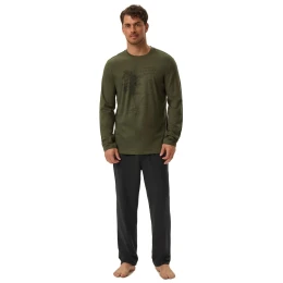 Pánské pyžamo 41905 Jerry green HENDERSON - z vysoce jakostní bavlny - zelené tričko s dlouhými rukávy - na přední straně ozdobené potiskem - dlouhé jednobarevné kalhoty