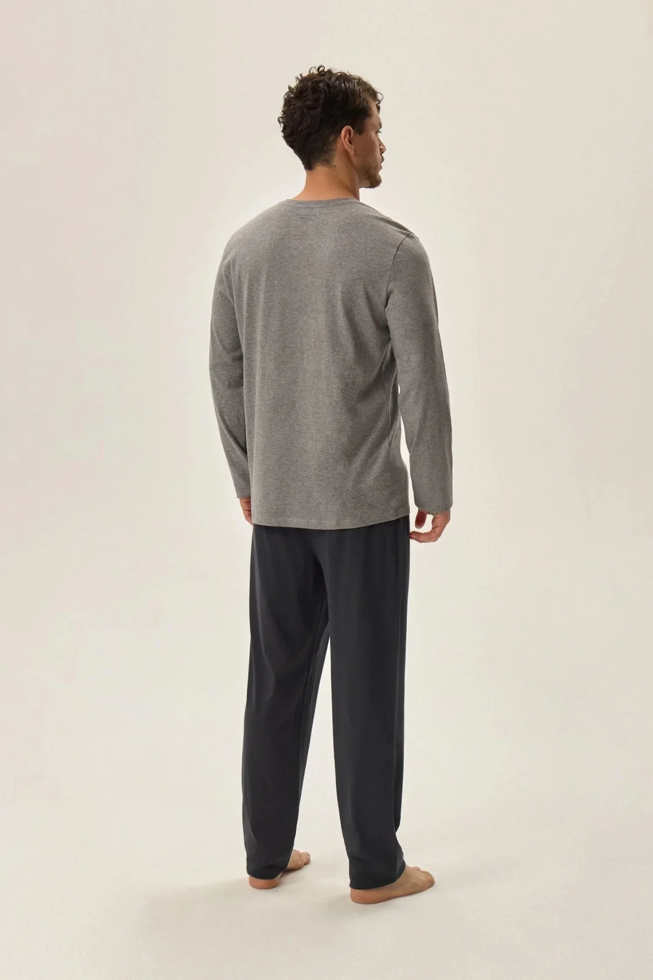 Pánské pyžamo 41911 Japan HENDERSON - z vysoce jakostní bavlny - tričko šedé barvy s dlouhými rukávy - na přední straně ozdobené potiskem - dlouhé jednobarevné kalhotyMateriálové složení: 100% bavlna