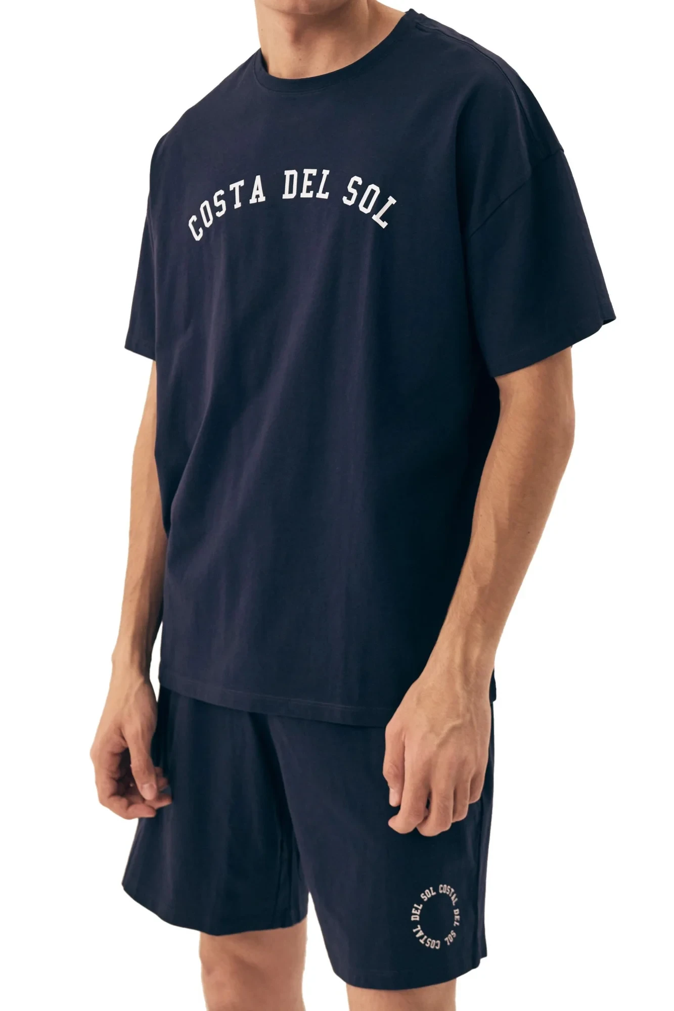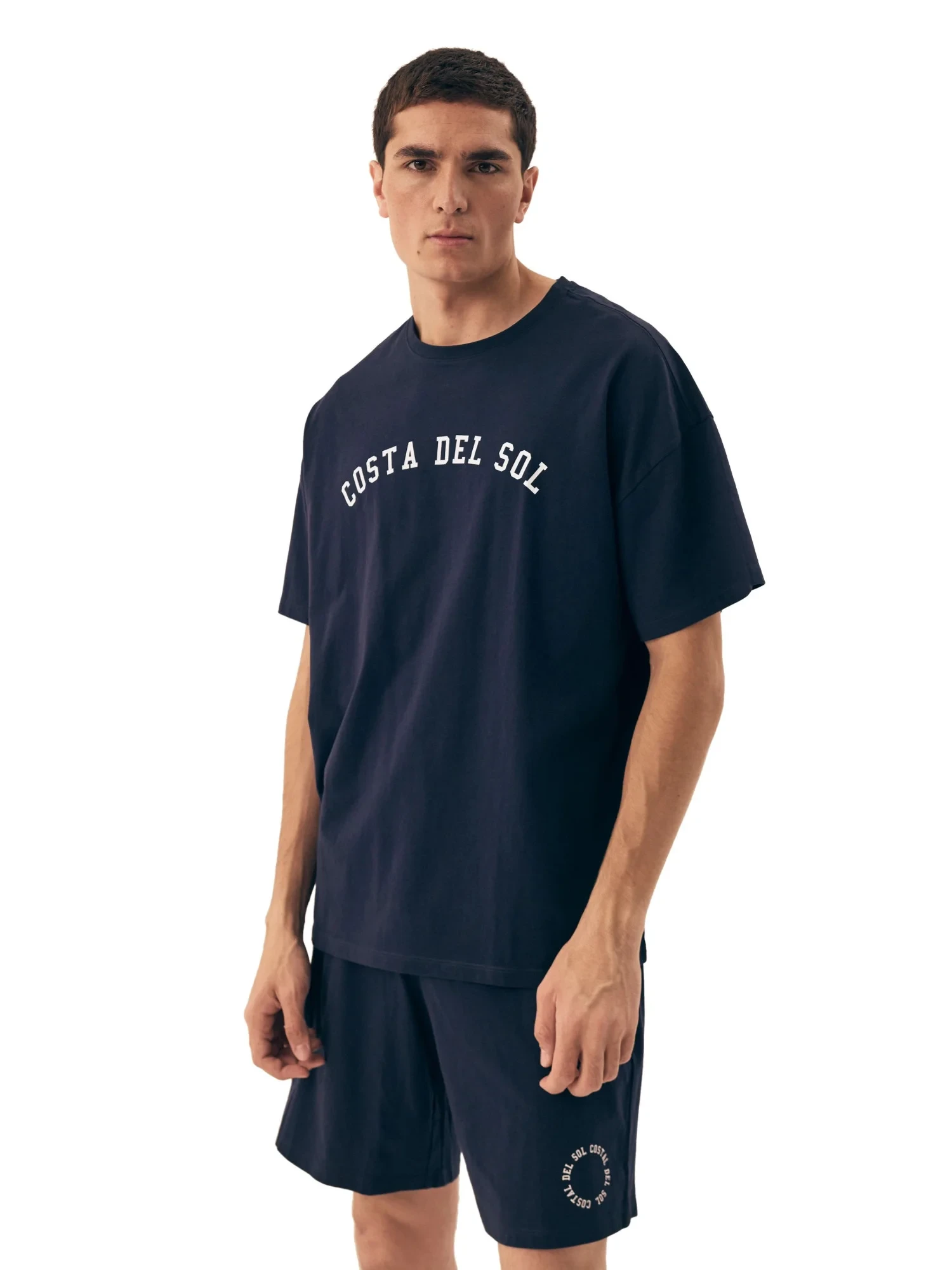 Pánské pyžamo 42605 Sol HENDERSON - z vysoce jakostní bavlny - tmavě modré tričko s krátkými rukávy - zdobené potiskem na přední straně - jednobarevné šortky zdobené potiskem - elastický pas