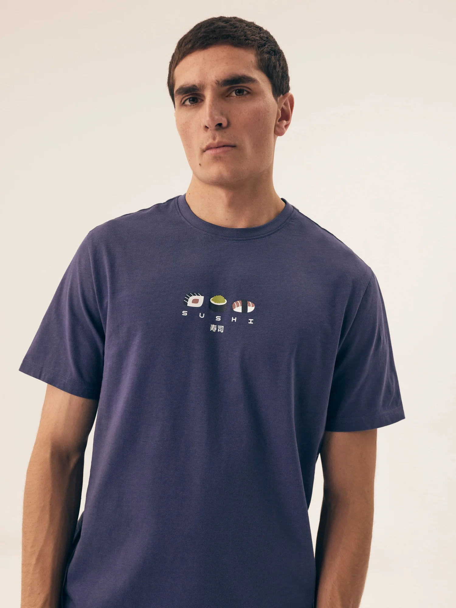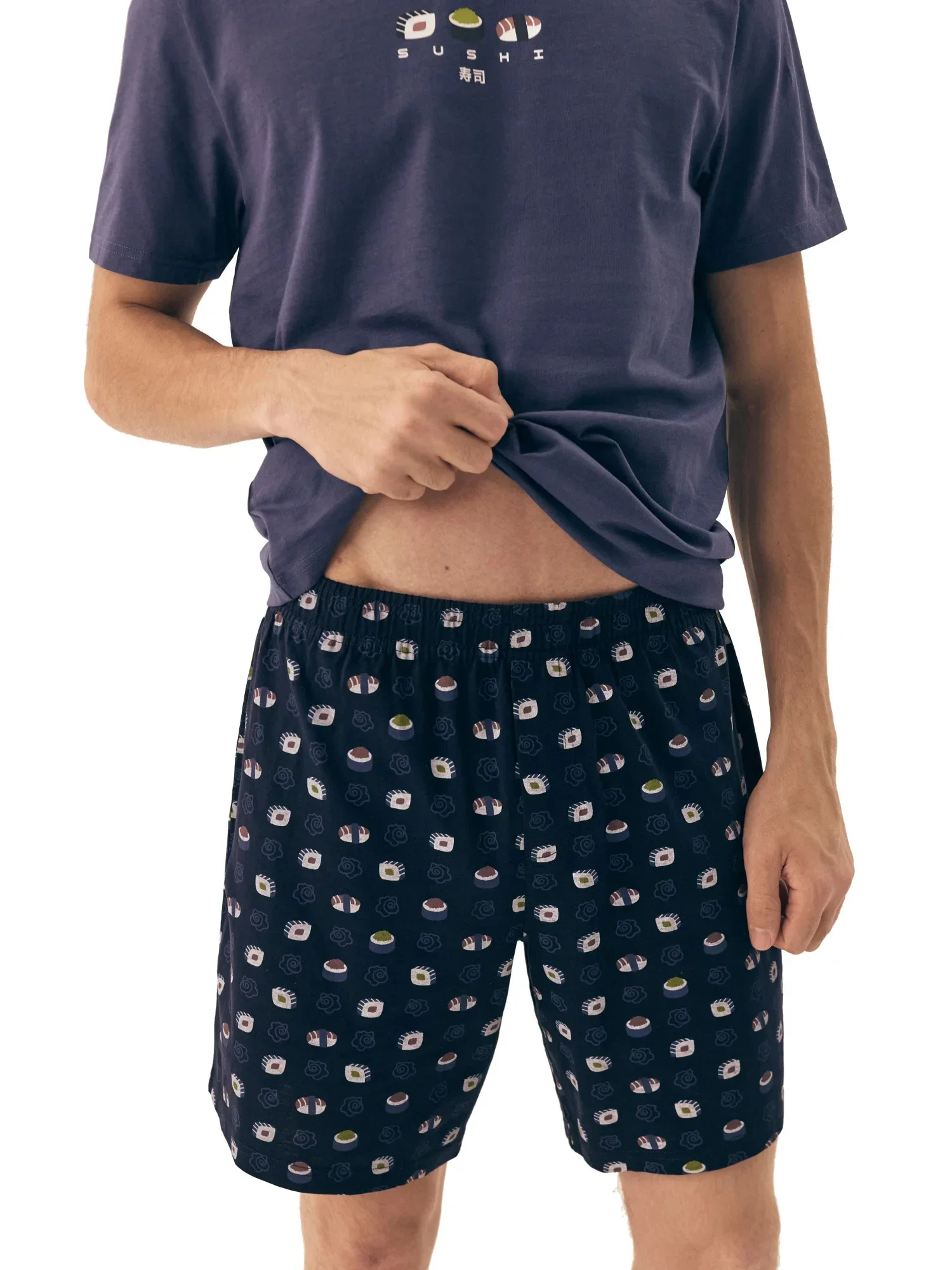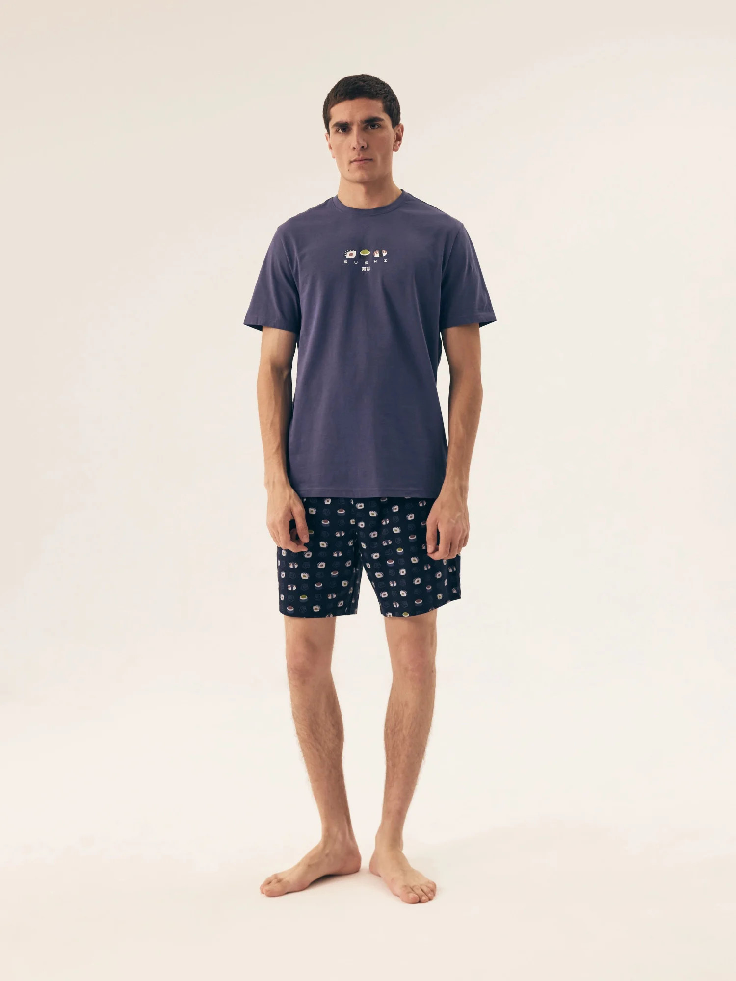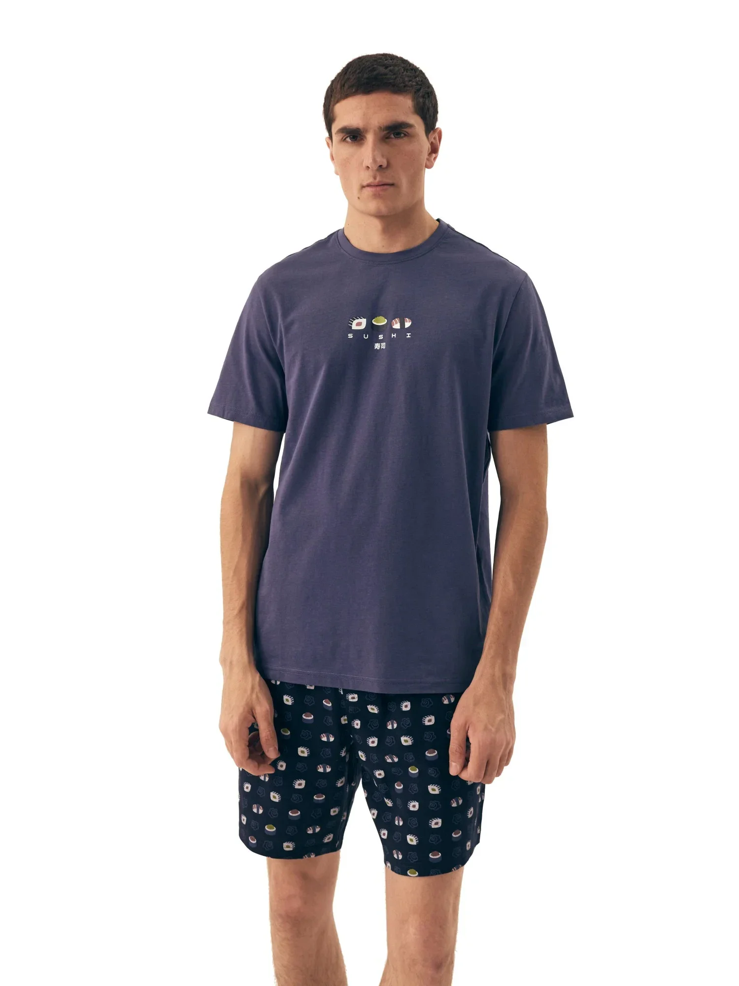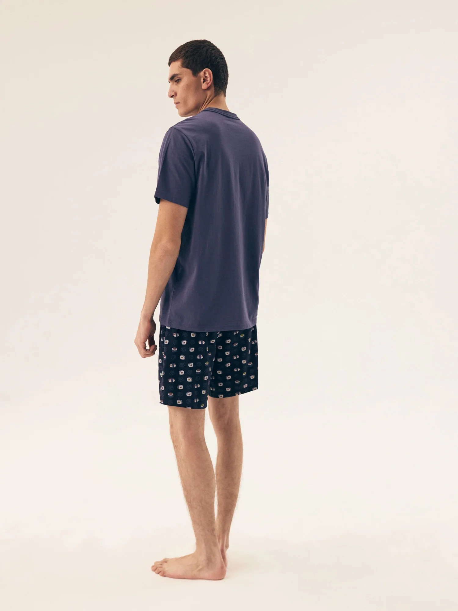 Pánské pyžamo 42606 Sake HENDERSON - z vysoce jakostní bavlny - tmavě modré tričko s krátkými rukávy - zdobené potiskem na přední straně - vzorované šortky - elastický pas