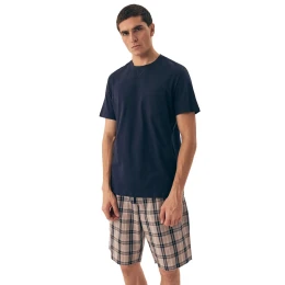 Pánské pyžamo 42617 Dexter HENDERSON - z vysoce jakostní bavlny - tmavě modré tričko s krátkými rukávy - zdobené kapsičkou na přední straně - kárované šortky světlé barvy - elastická guma se šňůrkou