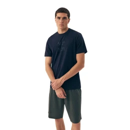 Pánské pyžamo 42632 Dreamer HENDERSON - z vysoce jakostní bavlny - tmavě modré tričko s krátkými rukávy - zdobené nápisem na přední straně - jednobarevné šortky - elastická guma se šňůrkou