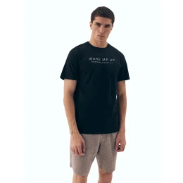 Pánské pyžamo 42634 Dare HENDERSON - z vysoce jakostní bavlny - černé tričko s krátkými rukávy - zdobené nápisem na přední straně - jednobarevné šortky - elastická guma se šňůrkou