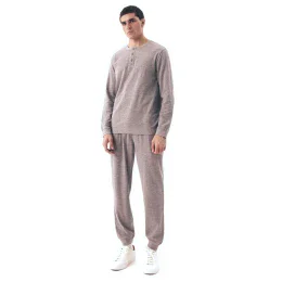 Pánské pyžamo 42638 Desert grey HENDERSON - z vysoce jakostní bavlny se strukturou - šedé tričko s dlouhými rukávy - výstřih se zapínáním na knoflíčky - dlouhé kalhoty šedé barvy - široký elastický pás se šňůrkou v pase - kapsy na bocích - rukávy, spodní lem a nohavice zakončené žebrovanými manžetami