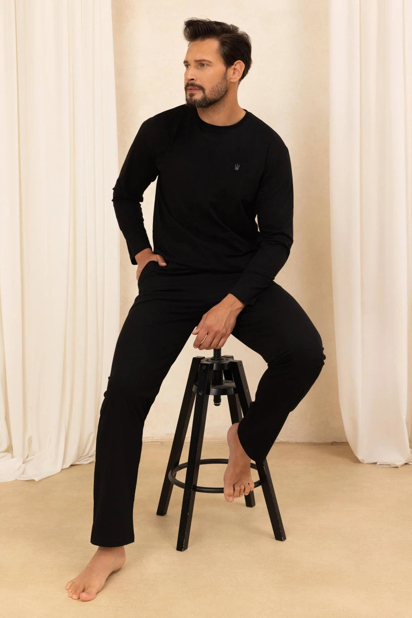 Góra piżamy wyróżnia się subtelnym haftem na przodzie, który dodaje całości eleganckiego, stonowanego charakteru. Klasyczny fason zapewnia swobodę noszenia zarówno nocą, jak i podczas relaksu w domu. Długie spodnie wyposażone są w kieszenie, co zwiększa praktyczność zestawu — idealne rozwiązanie na poranki, wieczory i spokojne domowe chwile. Piżama dostępna jest w rozmiarach M–XXL i sprawdzi się przez cały rok jako wygodna baza domowej garderoby.