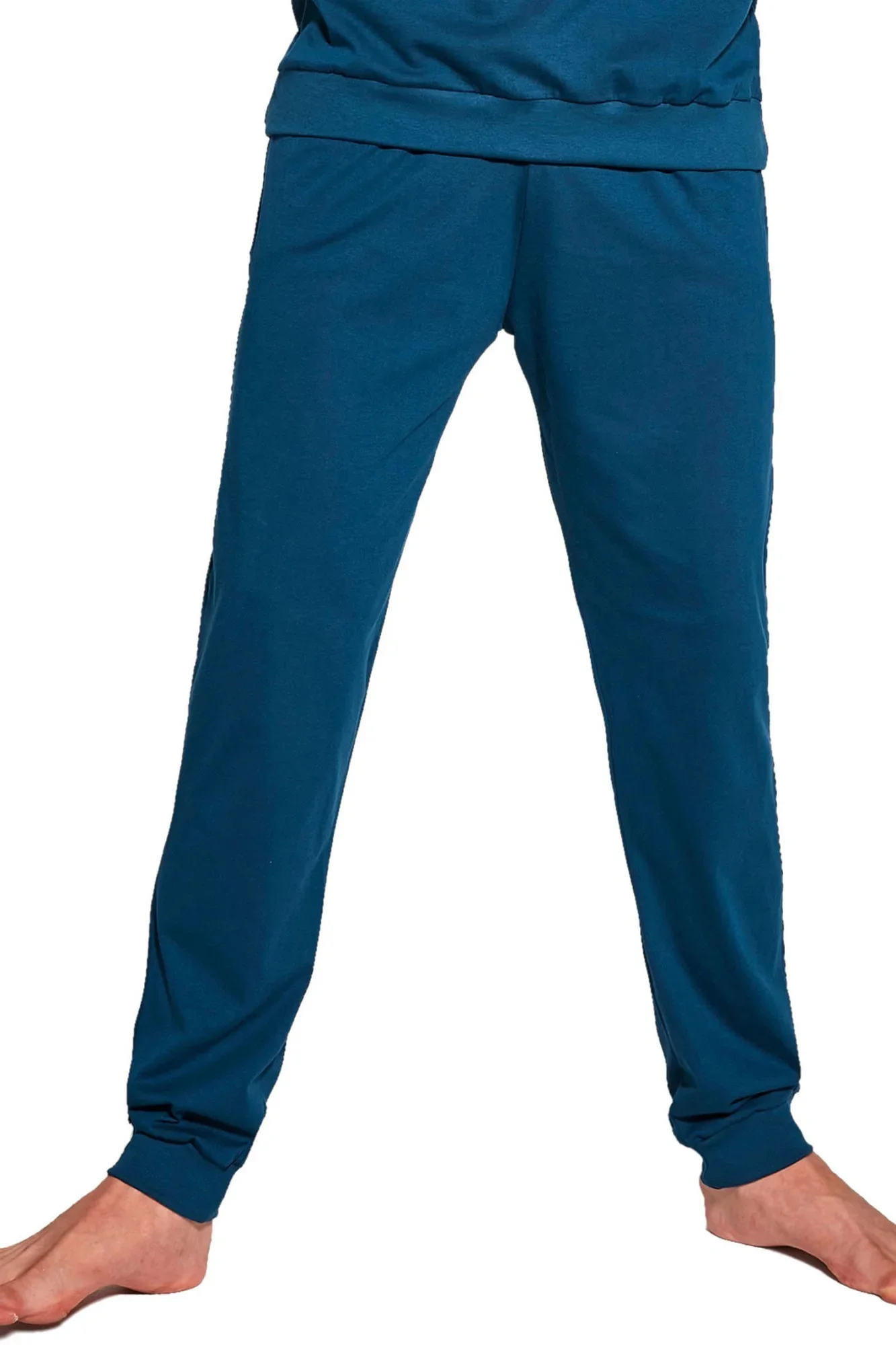 Pánské pyžamo 998/47 Space CORNETTE - z vysoce kvalitní a měkké bavlny - tričko je tmavě modré barvy s dlouhými rukávy - zdobené barevným potiskem - dlouhé jednobarevné kalhoty mají pohodlnou gumu v pase
