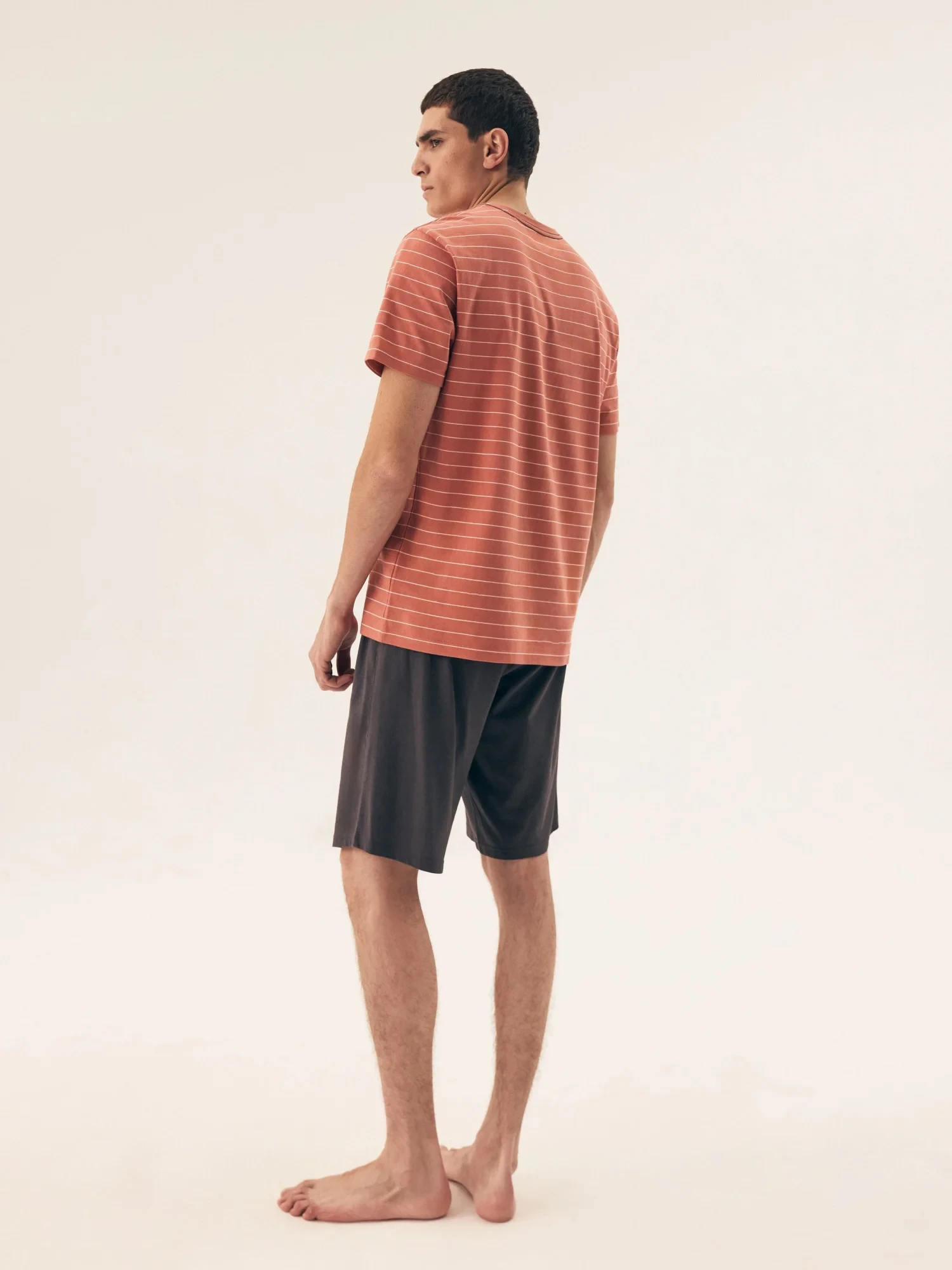 Pánské pyžamo 42635 Deli coral HENDERSON - z vysoce jakostní bavlny - korálové tričko s krátkými rukávy - s pruhy - zdobené nápisem na přední straně - jednobarevné šortky - elastická guma se šňůrkou