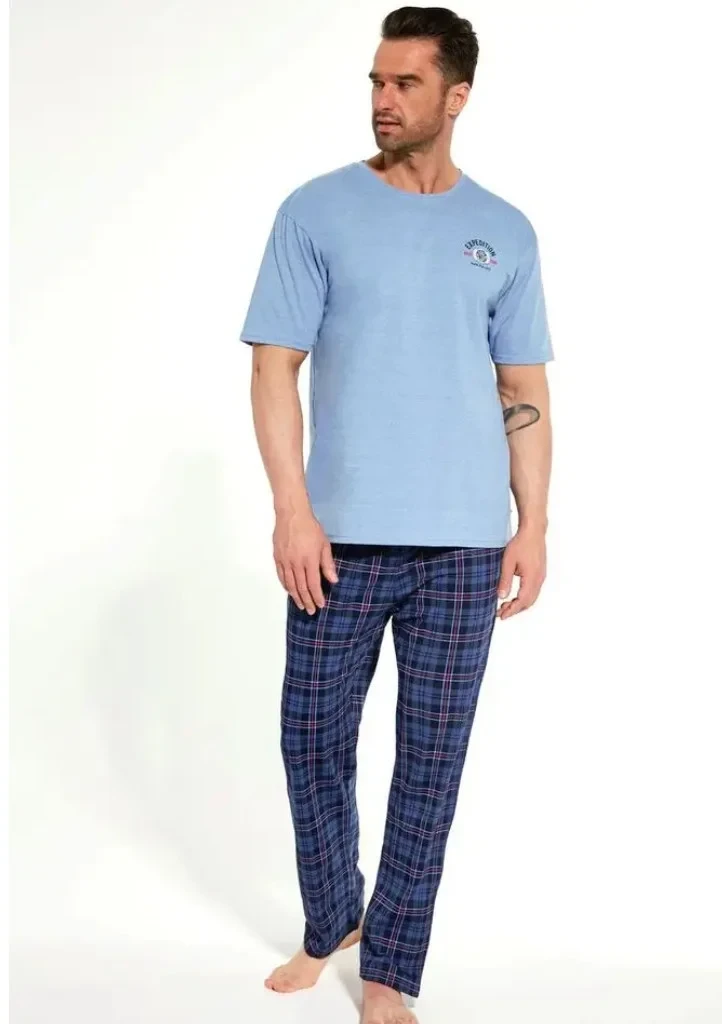 Příjemné a pohodlné pánské pyžamo s krátkým rukávem a dlouhými nohavicemi značky Cornette. Vrchní díl má kulatý výstřih a na předním díle je malý nápis. Vyrobeno z kvalitní bavlny .