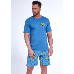 Pánské pyžamo značky Cornette je perfektní volbou pro muže, kteří si zakládají na kvalitě, pohodlí a stylovém vzhledu. Pyžamo je vyrobeno ze 100% bavlny a nabízí maximální komfort pro spánek i domácí pohodu. Součástí je modré tričko s krátkým rukávem, kulatým výstřihem a originálním měkkým potiskem na hrudi. K tomu ladí krátké kraťasy s veselým motivem barevných skútrů a pohodlnou širokou gumou v pase, lemovanou bavlnou. Pyžamo je elegantně zabaleno, což z něj činí skvělý tip na dárek.