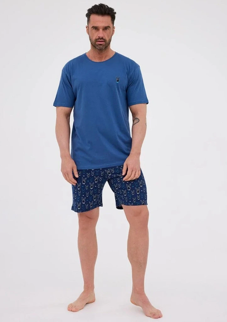 Jedná se o komfortní pánské pyžamo s krátkým rukávem a krátkými šortkami. Vrchní díl má jednoduchý střih s jemným vyšívaným motivem králíčka, šortky jsou vzorované motivem „bunny“ opakující se drobné obrázky králíčků. Celkově pohodlný a hravý desing. Vyrobeno ze 100% bavlny, což zaručuje měkkost, prodyšnost a pohodlné nošení i při teplých nocích. Vrchní díl s krátkým rukávem, kulatým výstřihem, šortky mají pohodlný elastický pás, volný střih a hravý vzor.
