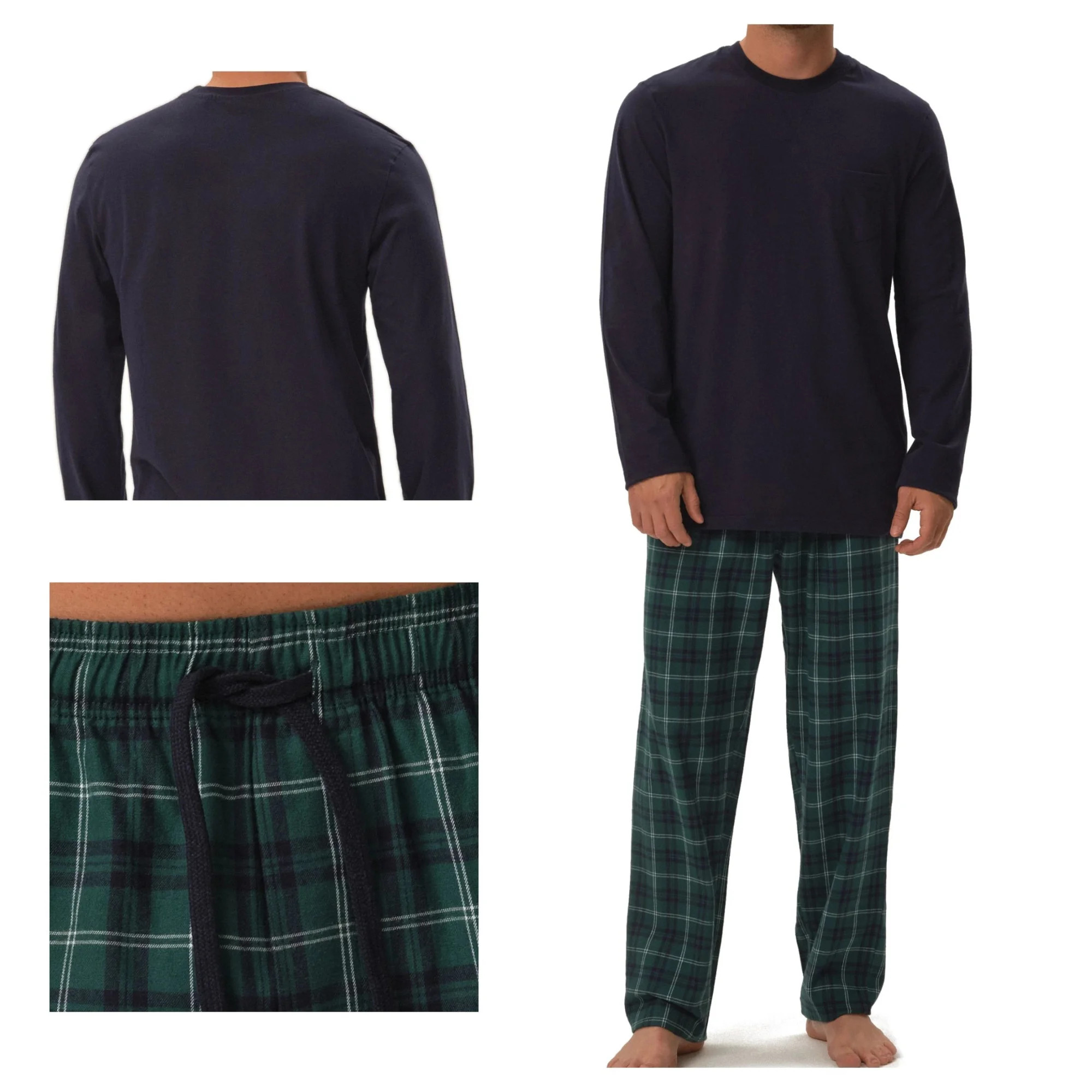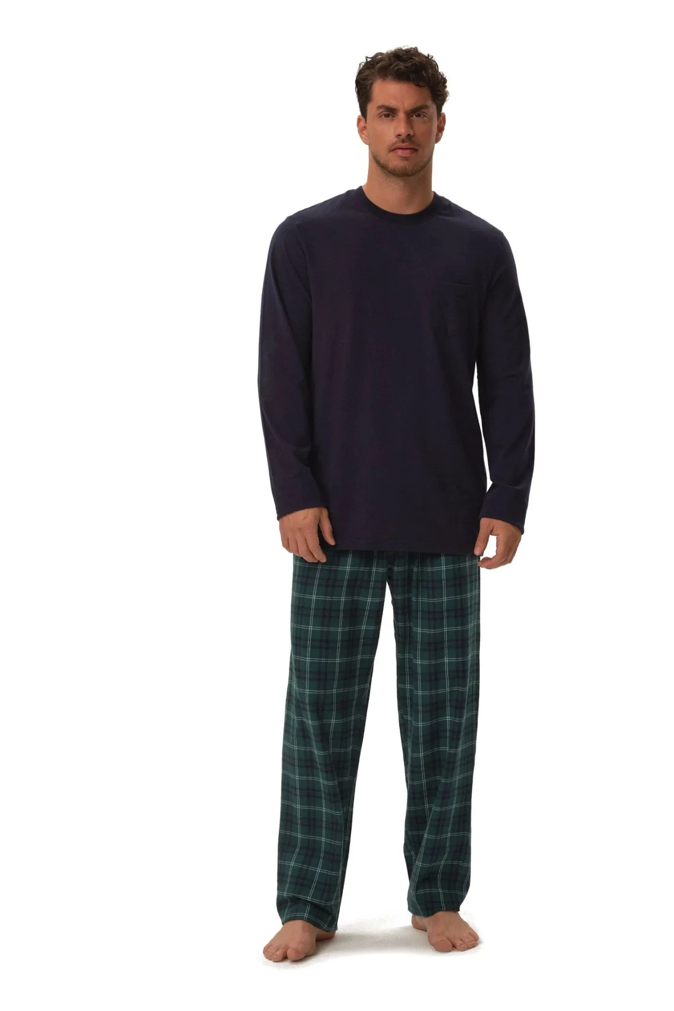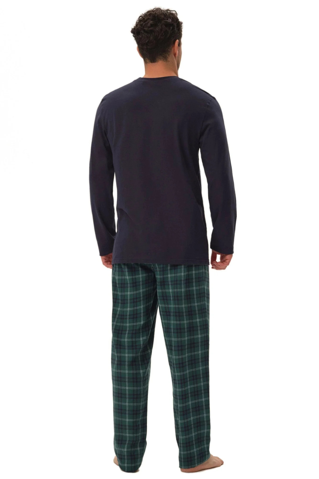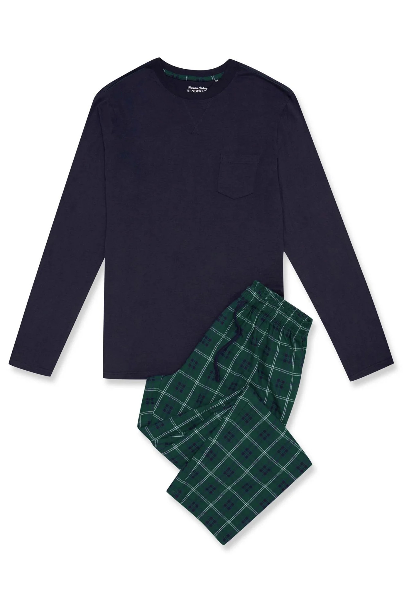 Pánské pyžamo 41913 Herb dark blue HENDERSON - z vysoce jakostní bavlny - tmavě modré tričko s dlouhými rukávy - dlouhé kárované kalhoty - v pase zavazování na šňůrku