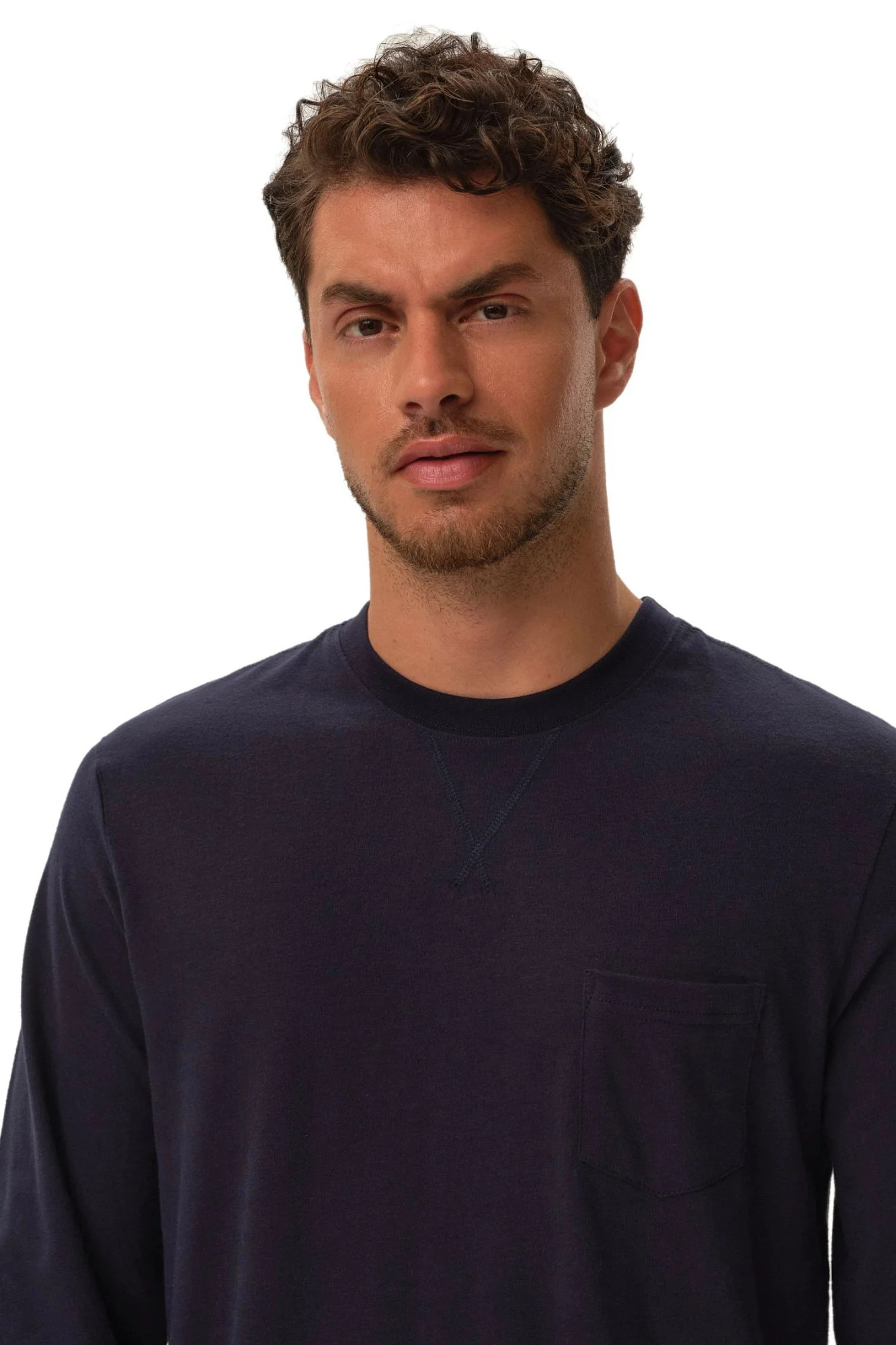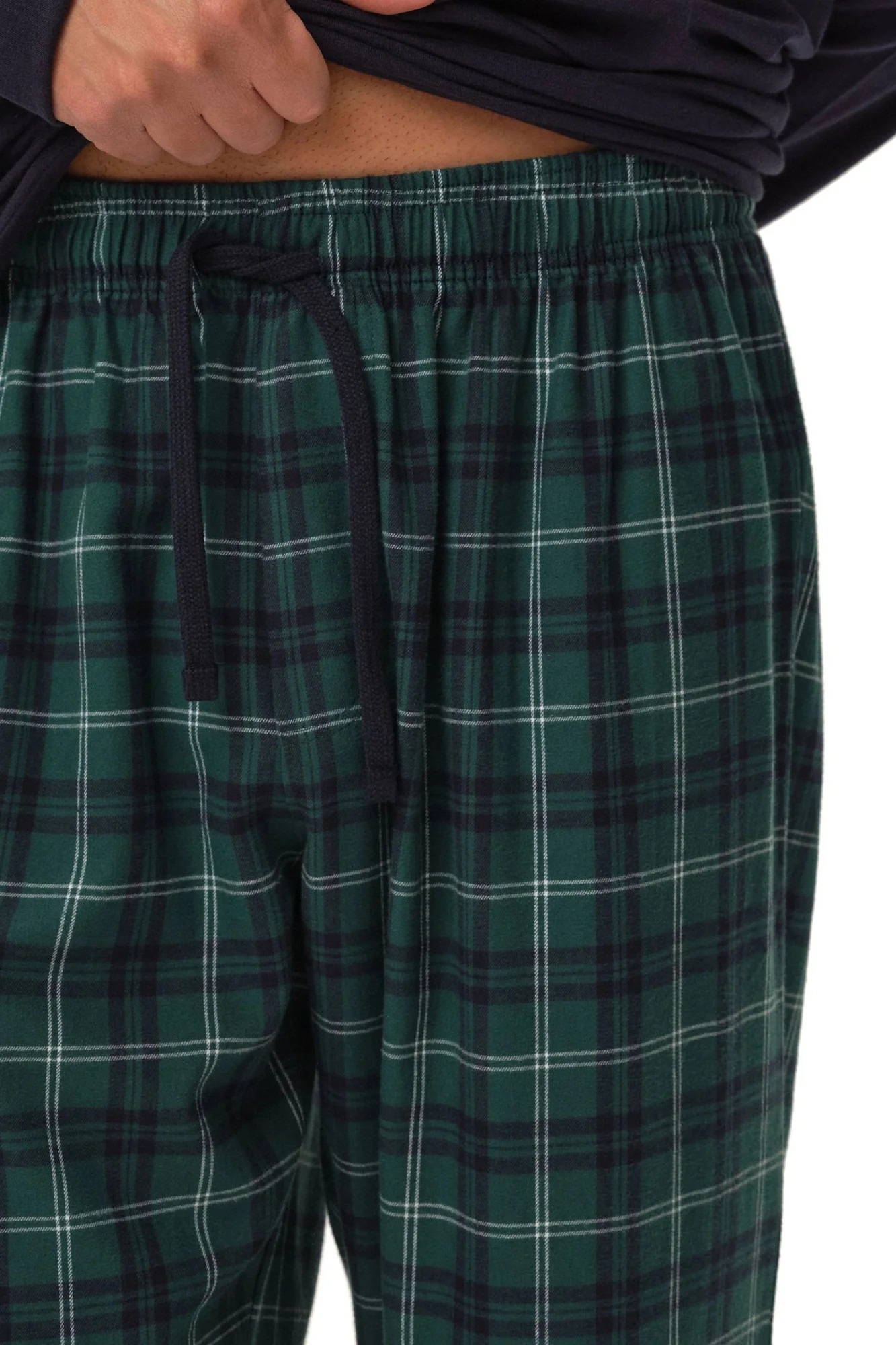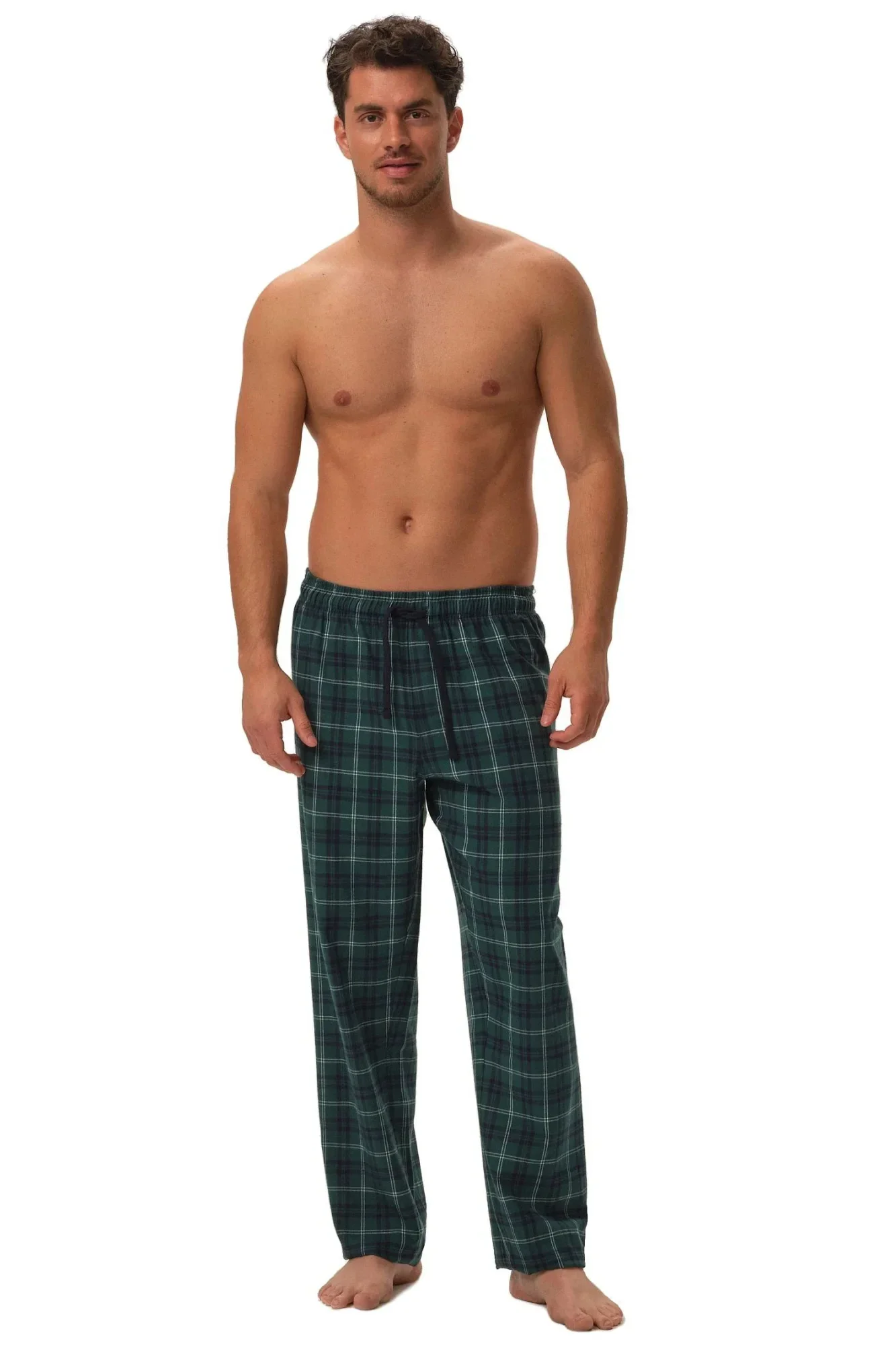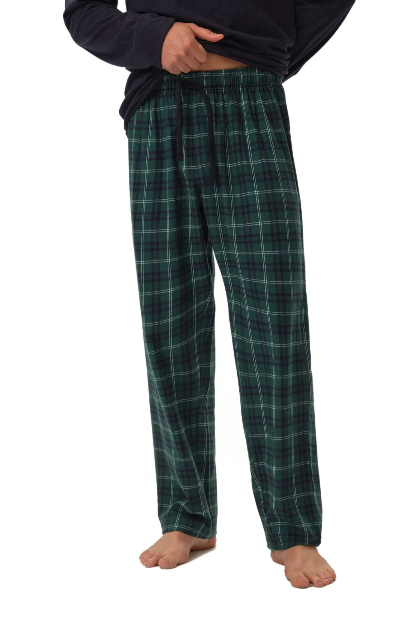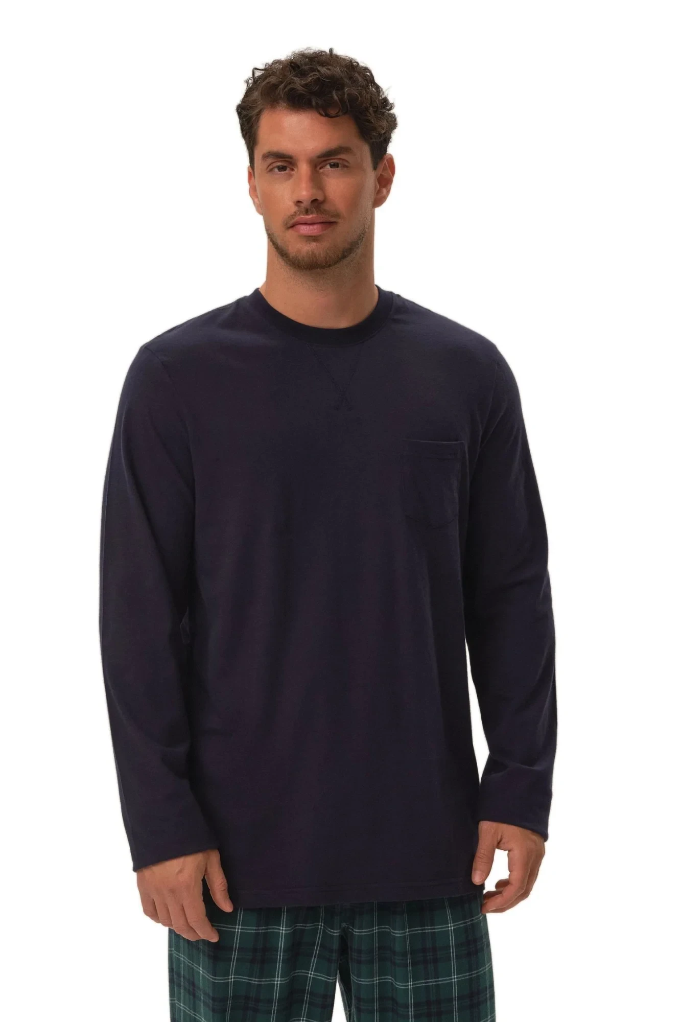 Pánské pyžamo 41913 Herb dark blue HENDERSON - z vysoce jakostní bavlny - tmavě modré tričko s dlouhými rukávy - dlouhé kárované kalhoty - v pase zavazování na šňůrku