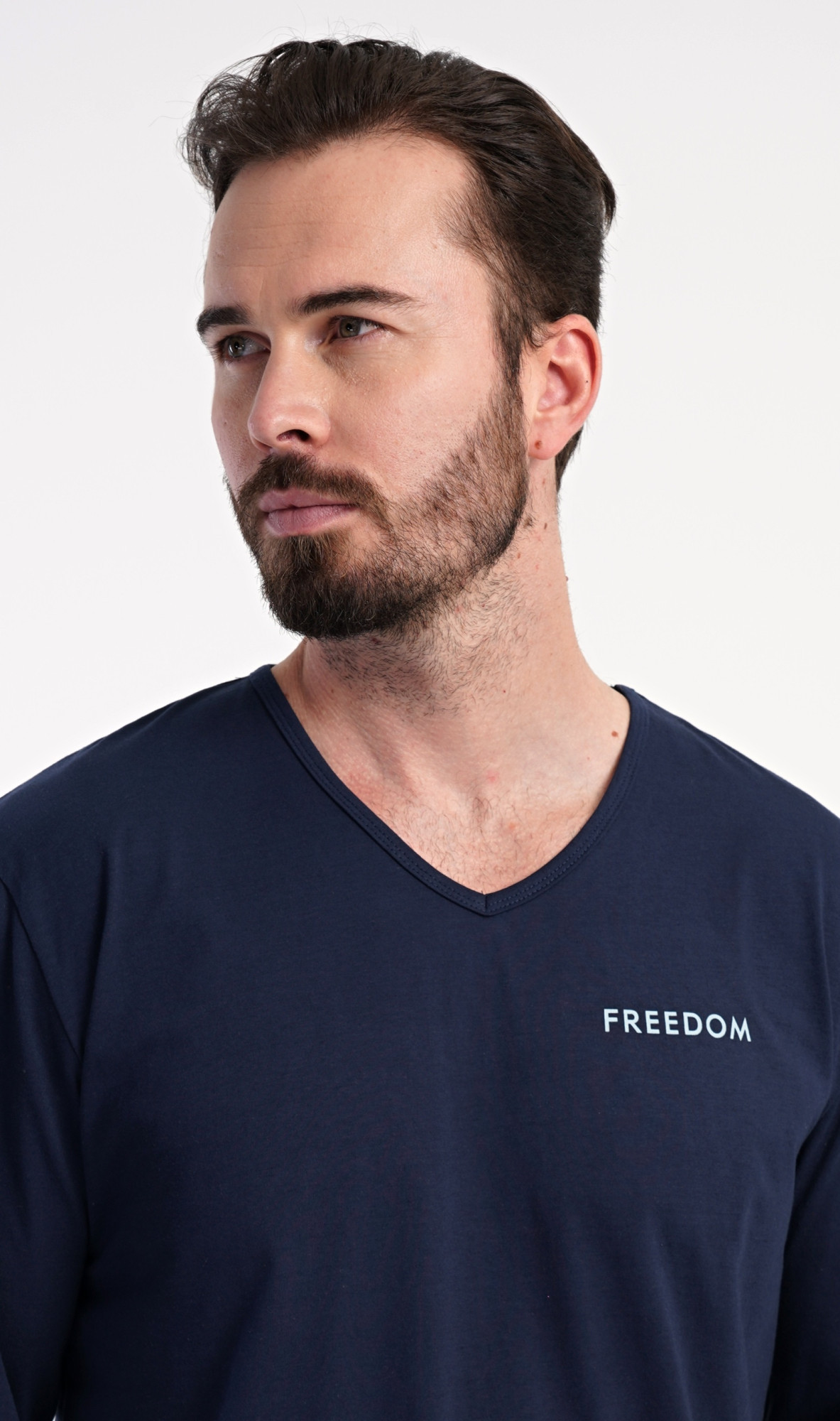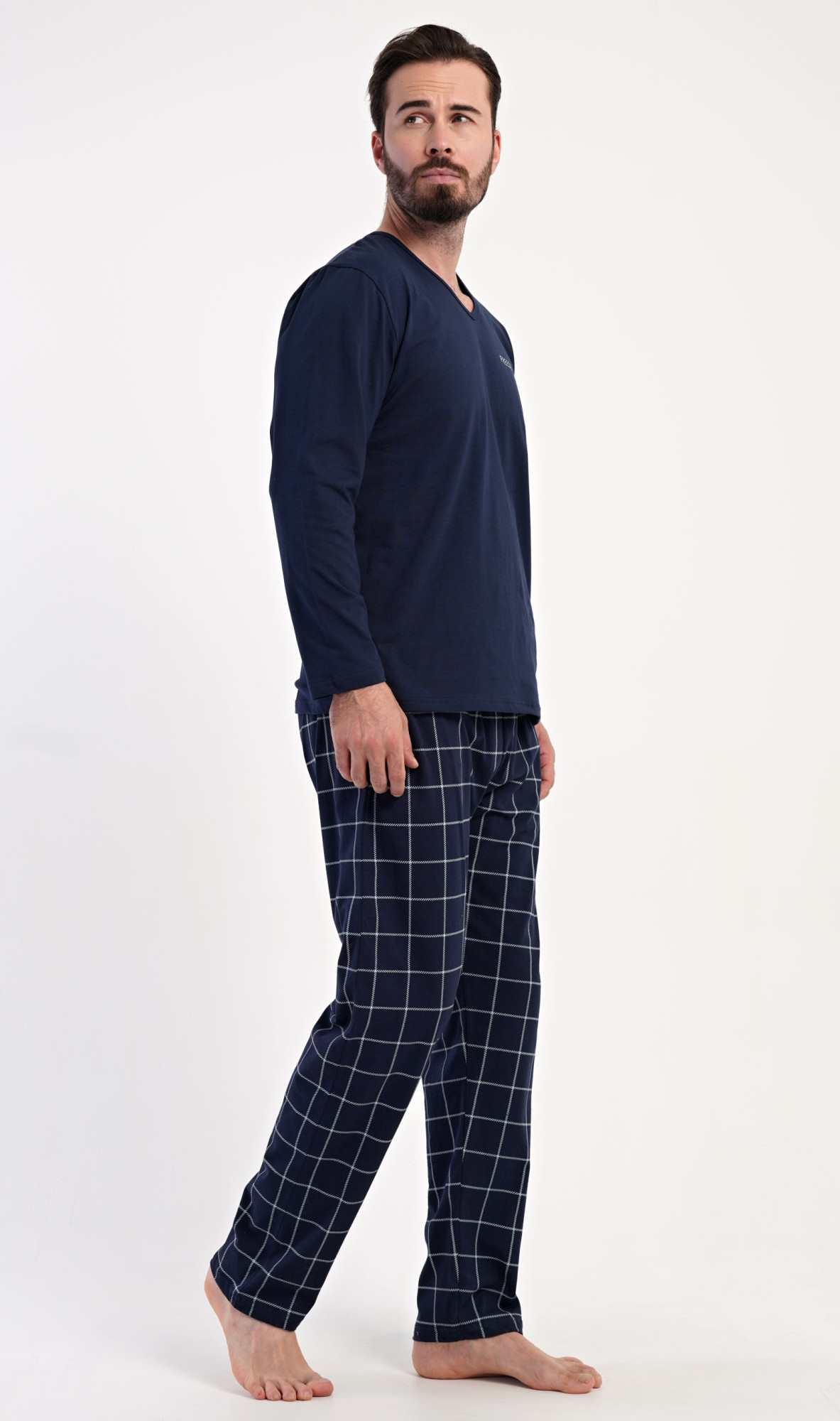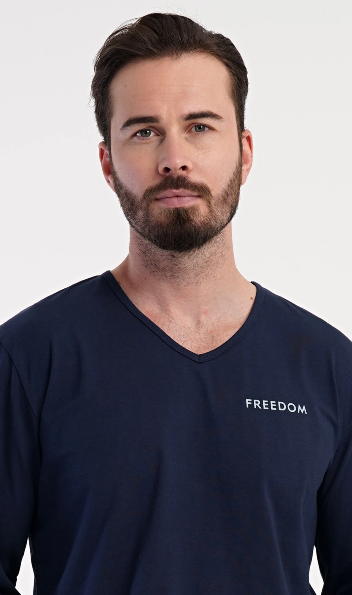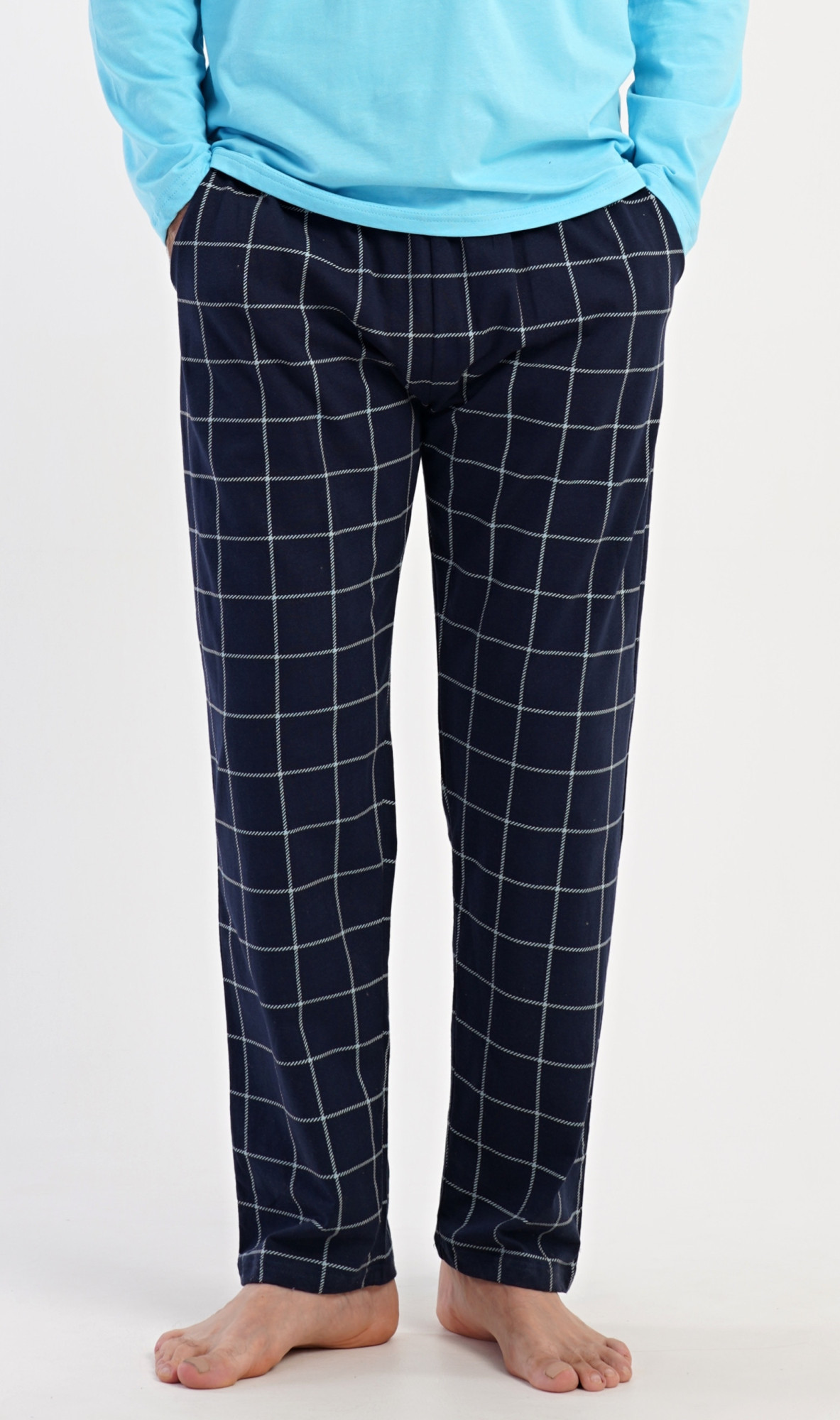Pánské bavlněné pyžamo s dlouhým rukávem Freedom. Pánské pyžamo se skládá z trika s dlouhým rukávem a dlouhých kalhot. Triko s výstřihem do V zdobí na hrudi drobný nápis FREEDOM. Triko doplňují kárované kalhoty, které mají v pase gumu, šňůrku na stažení a praktické kapsy. Použitý materiál s obsahem bavlny 100% je příjemný a poddajný na dotek.
