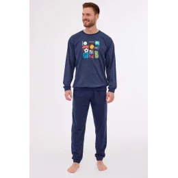 Pánské pyžamo z kvalitní měkké bavlny. pruhované tričko s dlouhými rukávy. dlouhé jednobarevné kalhoty. výstřih, manžety a spodní část trička s nohavicemi zakončené pohodlnou šňůrkou. pyžamo balené v krabici.