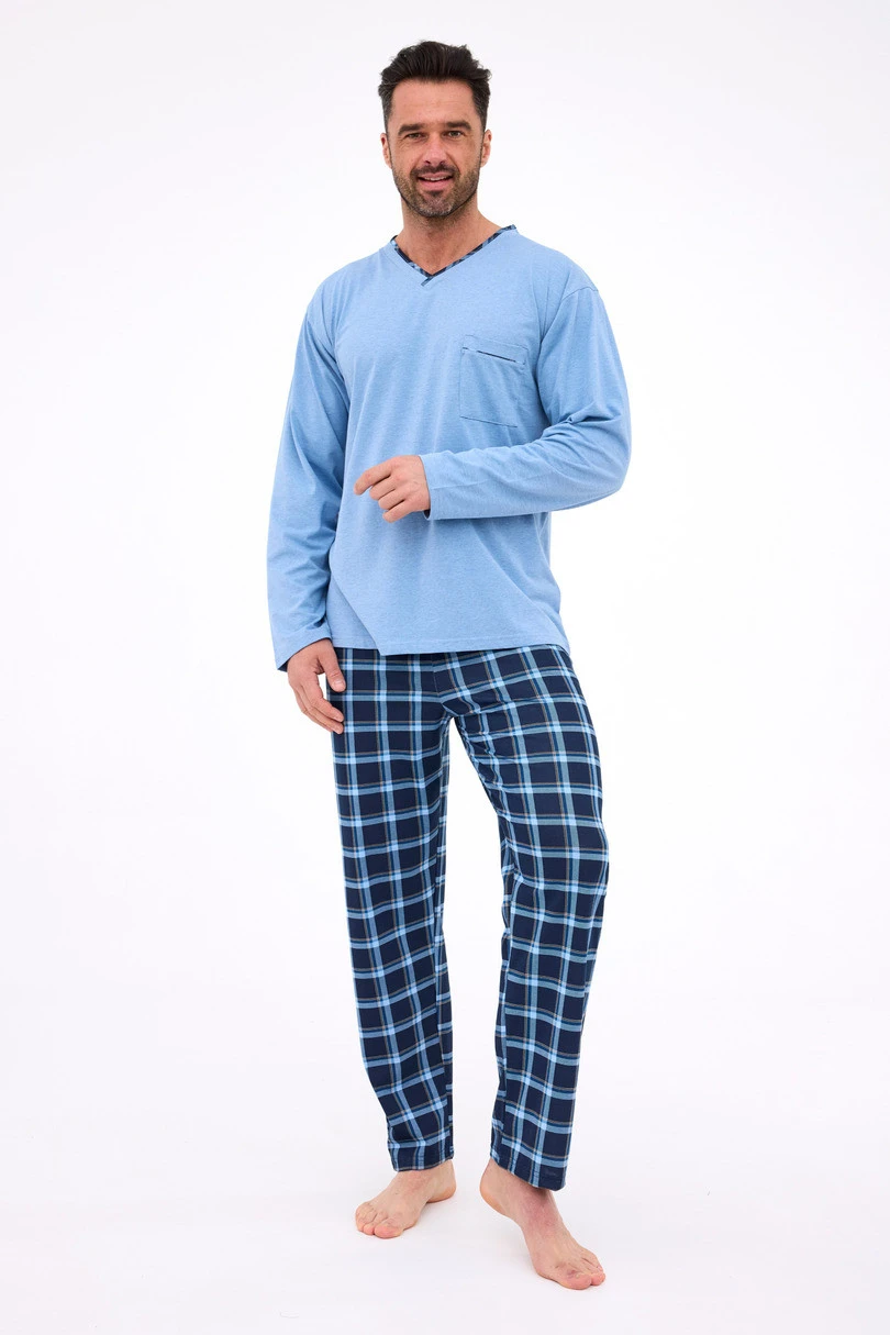 Pánské pyžamo Cornette DR 122/304 RICHARD je stylovým a pohodlným řešením pro muže, kteří si cení klasiky i pohodlí. Je vyrobeno ze 100% kvalitní, měkké bavlny a zajišťuje prodyšnost a perfektní padnutí. Hlavní část soupravy tvoří blůza s dlouhými rukávy a praktickým výstřihem do V. Další předností je kapsa na hrudi, která pyžamu dodává eleganci a funkčnost. Spodní část tvoří dlouhé rovné kalhoty v módním kostkovaném vzoru. Celá souprava je zabalena v elegantní krabičce – ideální nápad na dárek.
