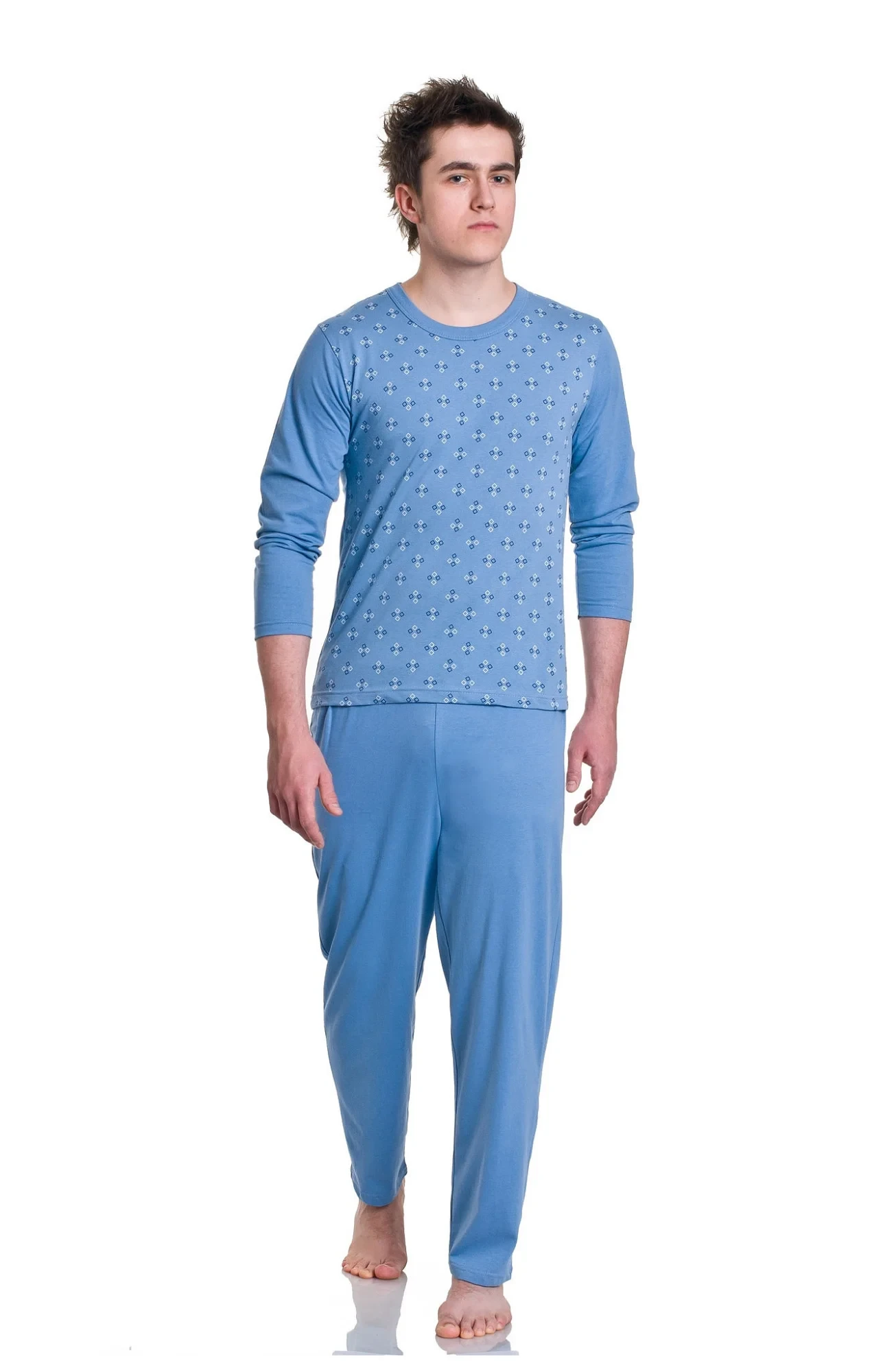 Blůza pyžama má dlouhé rukávy a výstřih ve tvaru písmene "V", nebo půlkulatý. Dlouhé kalhoty jsou jednobarevné. Dostupné barvy, které jsou vybírány náhodně: džínová, grafitová, tmavě modrá, světle modrá.
