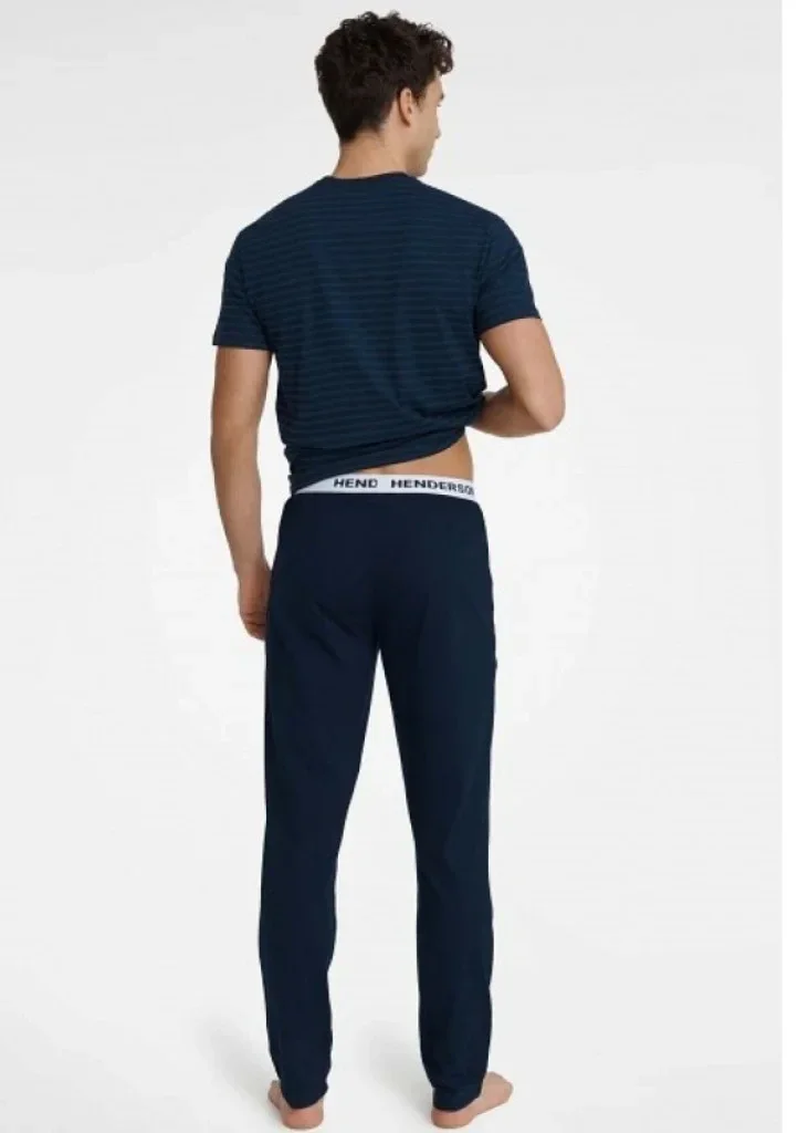 Pánské pyžamo od značky Henderson je vyrobeno z příjemného a kvalitního materiálu. Pyžamo je ze 100% bavlny proto je velmi příjemné a pohodlné. Tričko má dlouhý rukáv, kulatý výstřih a po celé ploše jemné proužky. Kalhoty mají dlouhé nohavice a v pase širokou gumu s nápisem Henderson.