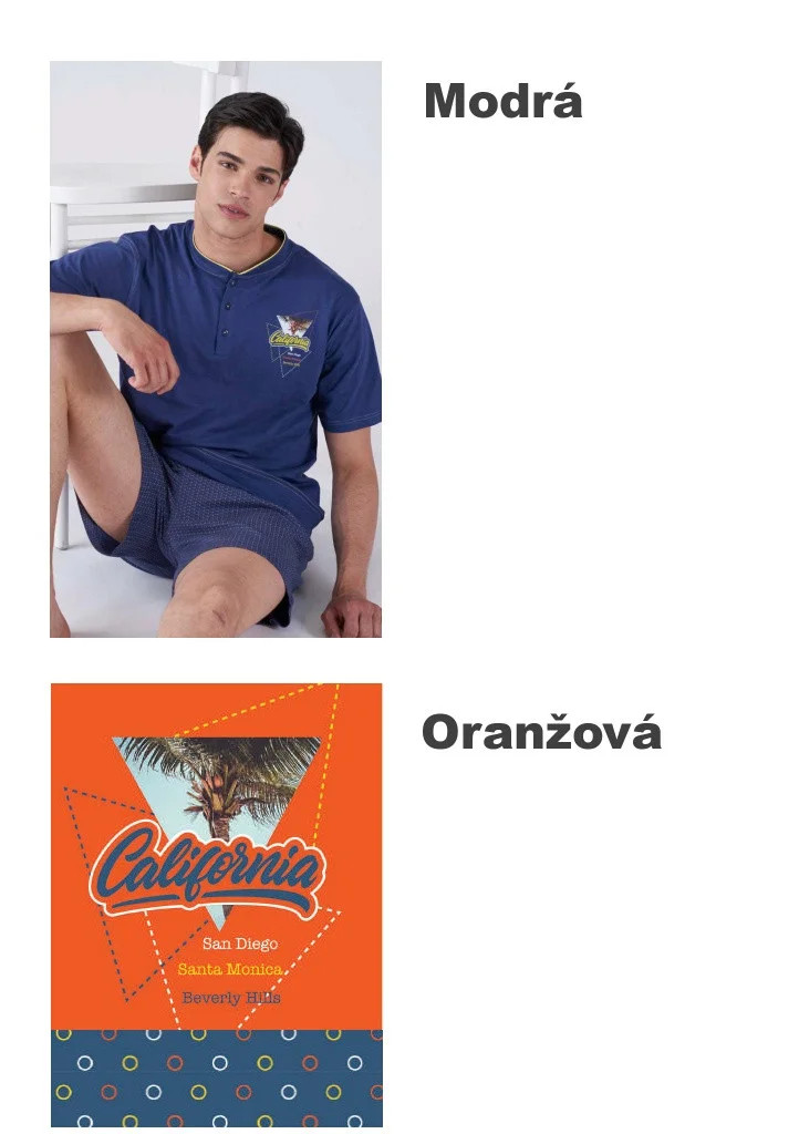 Pánské bavlněné pyžamo italské značky Karelpiu. Pyžamo je ze 100% bavlny, velmi příjemné a pohodlné i v letních měsících. Tričko má krátký rukáv, kulatý výstřih a légu se třemi knoflíky. Volné kraťasy mají v pase pohodlnou pružnou gumu.