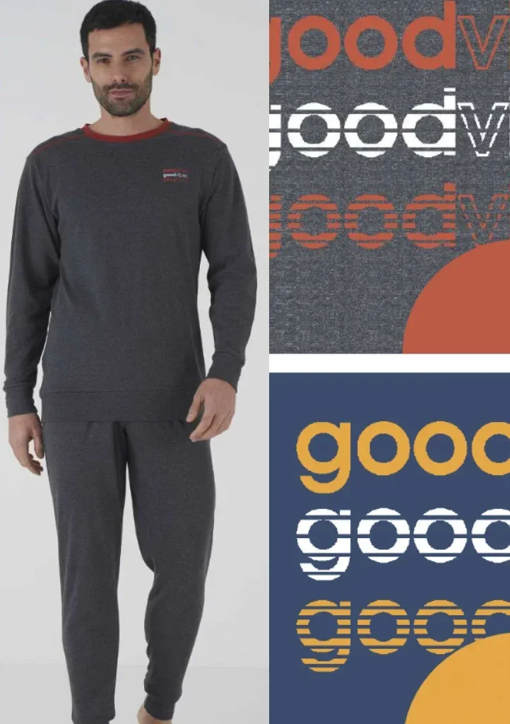 Pánské bavlněné pyžamo italské značky Karelpiu. Pyžamo je ušité ze 100% bavlny. Je velmi jemné, příjemné a pohodlné. Tričko má kulatý výstřih a dlouhé rukávy, které jsou ukončené do manžety. Kalhoty mají v pase pohodlnou gumu, mají šňůrku na zavazování. Pyžamo je ušité z příjemné hřejivé bavlny.