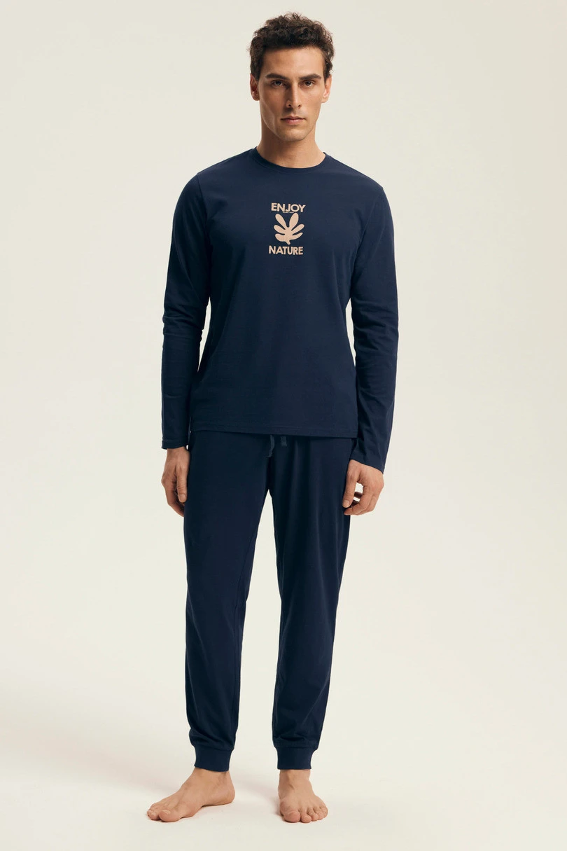 Piżama męska LEVEL 43467 AW25 to połączenie funkcjonalności, komfortu i stylu. Wykonana w 100% z wysokogatunkowej bawełny, gwarantuje miękkość, przewiewność i naturalne dopasowanie do ciała. Długi rękaw oraz spodnie z kieszeniami zapewniają wygodę przez cały sezon jesienno-zimowy. Koszulka z nadrukiem „ENJOY NATURE” podkreśla nowoczesny, casualowy charakter zestawu. Idealna dla mężczyzn ceniących jakość i komfort w codziennym wypoczynku.
