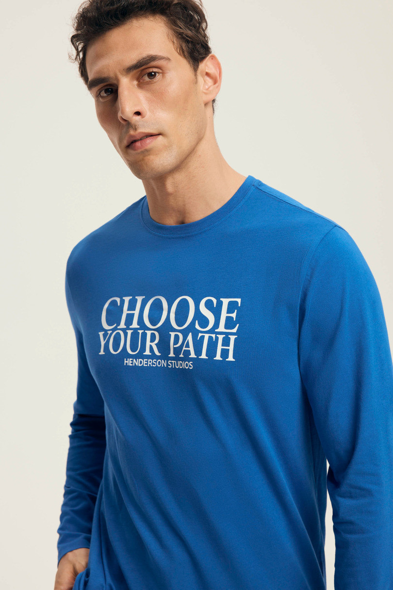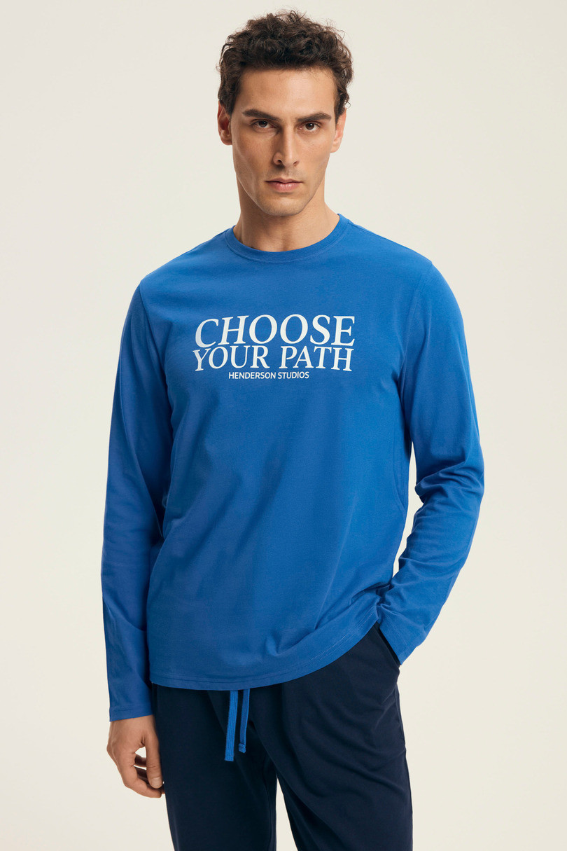 Rozpocznij dzień od dobrze przespanej nocy – z piżamą męską LOOP 43472 AW25 od Henderson to możliwe! Wykonana w 100% z miękkiej i oddychającej bawełny, zapewnia maksymalny komfort i swobodę ruchów. Górna część w energetycznym odcieniu niebieskiego z nadrukiem „CHOOSE YOUR PATH” motywuje do działania, a ciemne spodnie z troczkiem i ściągaczami zapewniają idealne dopasowanie. To idealna propozycja na nocny odpoczynek i leniwe poranki w stylu.