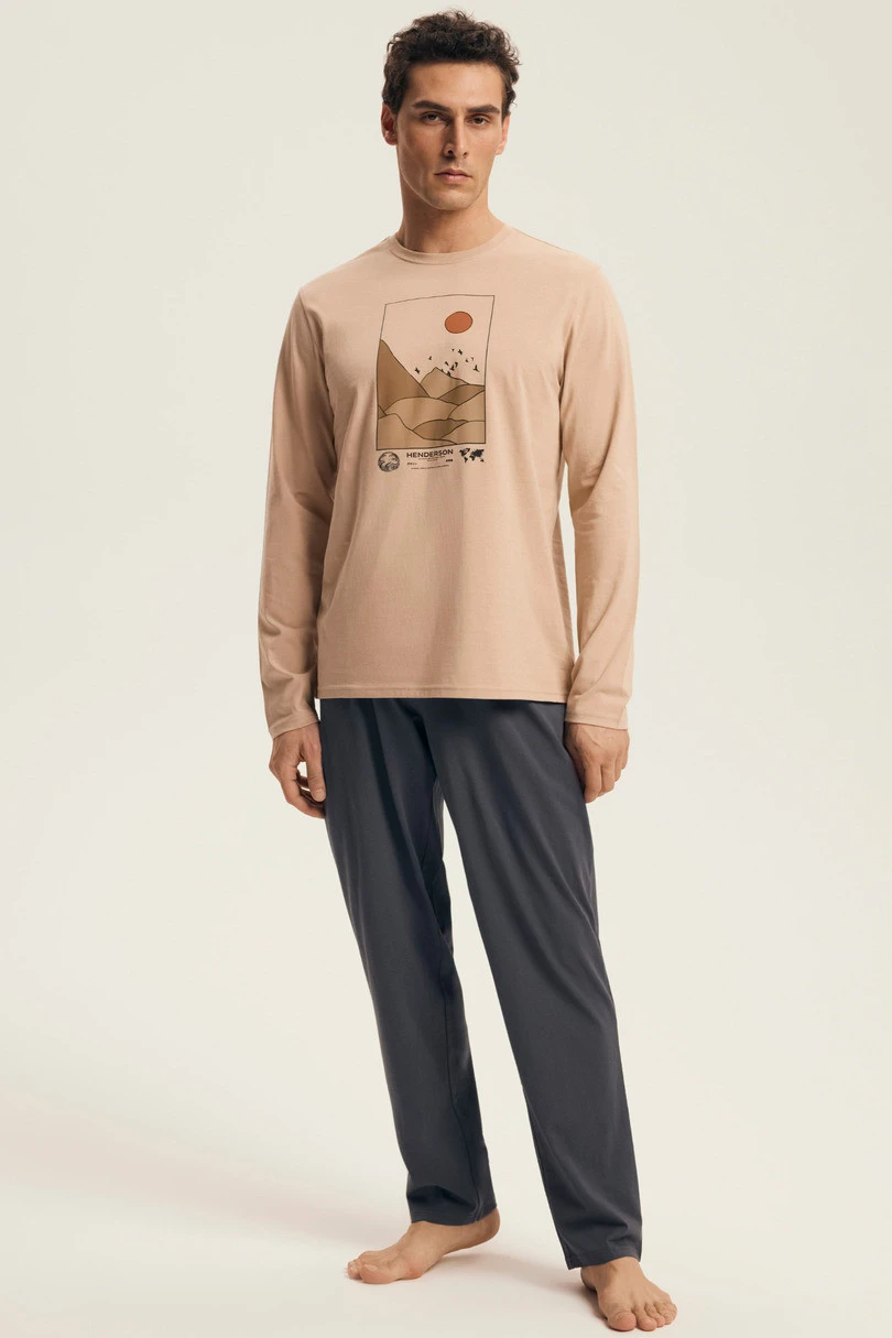 Zadbaj o jakość swojego snu dzięki piżamie męskiej LURO 43474 od marki Henderson. Wykonana w 100% z naturalnej bawełny, gwarantuje przewiewność, miękkość i wygodę przez całą noc. Bluzka z długim rękawem i minimalistycznym nadrukiem w stylu retro doskonale łączy modny wygląd z funkcjonalnością. Proste, jednokolorowe spodnie z elastycznym pasem zapewniają pełną swobodę ruchu. To idealny wybór zarówno na chłodniejsze wieczory, jak i leniwe poranki.
