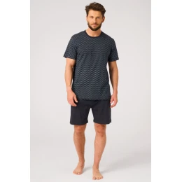 Pánská pyžamová souprava je dokonalou kombinací pohodlí a klasického stylu. Souprava se skládá z trička s krátkým rukávem a krátkých šortek v jednoduchém, volném střihu. Kvalitní, měkká pletenina je příjemná k pokožce a poskytuje pohodlí po celou noc i při domácím odpočinku.