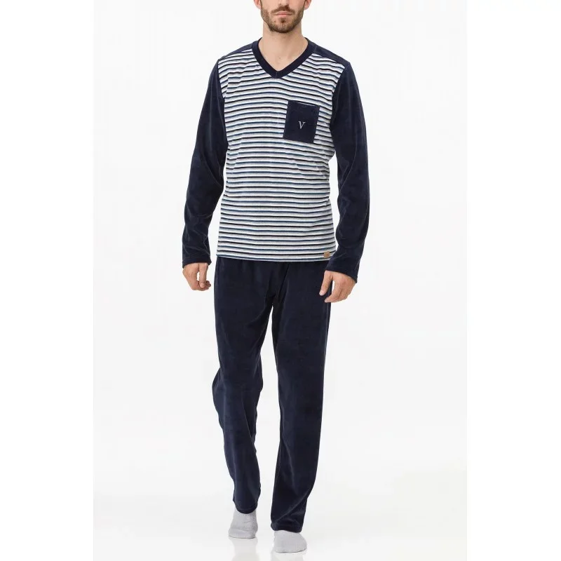 Produkt Pánské pyžamo model 14639049 - Vamp prodáváme v těchto velikostech: Ma barvách tm.modrá s proužky5210125018179