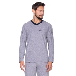 Pánské pyžamo 592 Regina - je vyrobené z velmi kvalitní bavlny - šedé tričko s dlouhými rukávy - pohodlné jednobarevné dlouhé kalhoty
