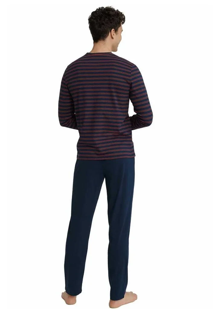 Pánské pyžamo od značky Henderson je vyrobeno z příjemného a kvalitního materiálu. Pyžamo je ze 100% bavlny a proto je velmi příjemné a pohodlné. Tričko má dlouhý rukáv, kulatý výstřih a po celé ploše jemné proužky a nápis Henderson. Kalhoty mají dlouhé nohavice a v pase všitou pohodlnou gumu s navlečenou šňůrkou