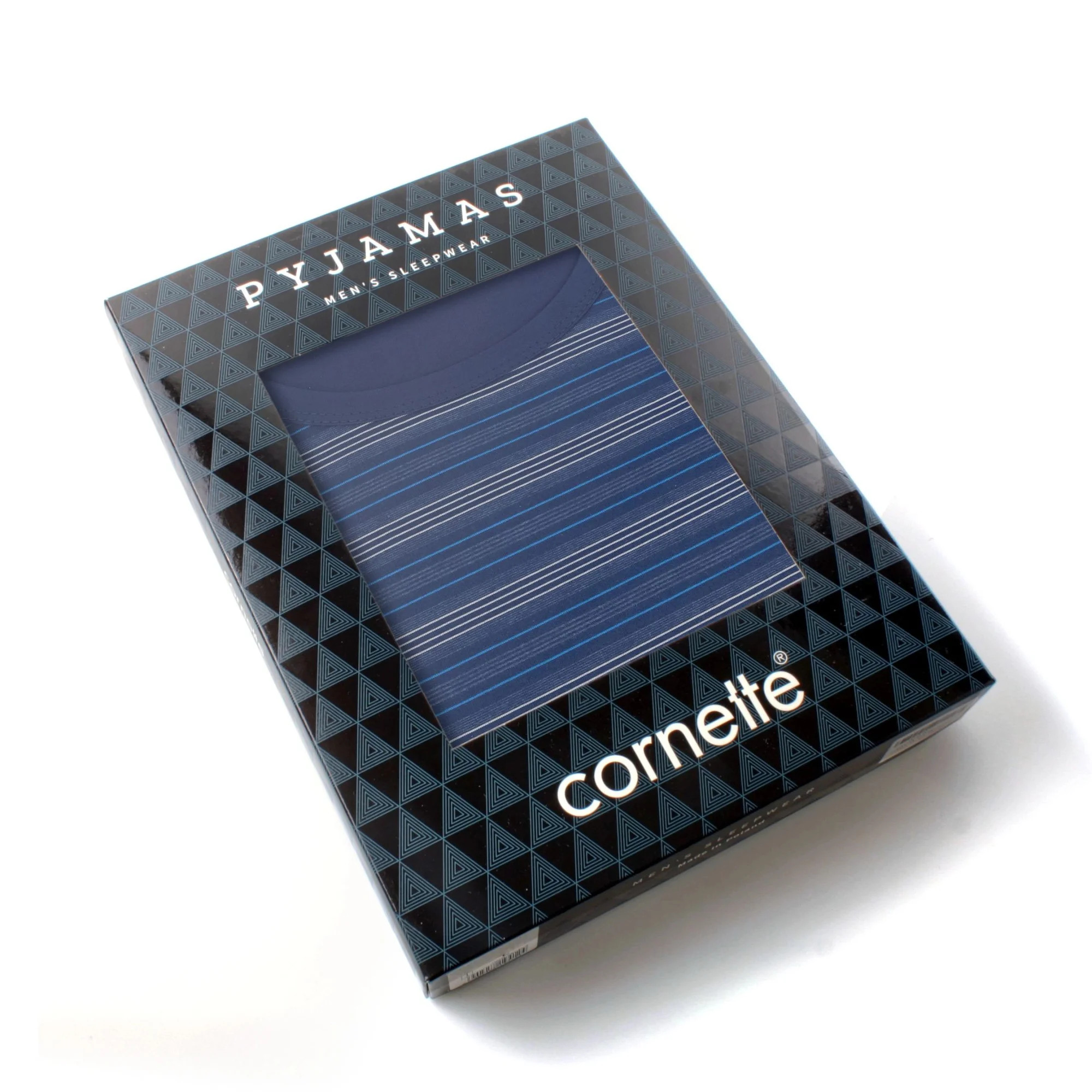 Pánské pyžamo 338/36 Various CORNETTE - tmavě modrá barva - z velmi kvalitní bavlny - pruhované triko s krátkými rukávy - pohodlné jednobarevné kraťasy