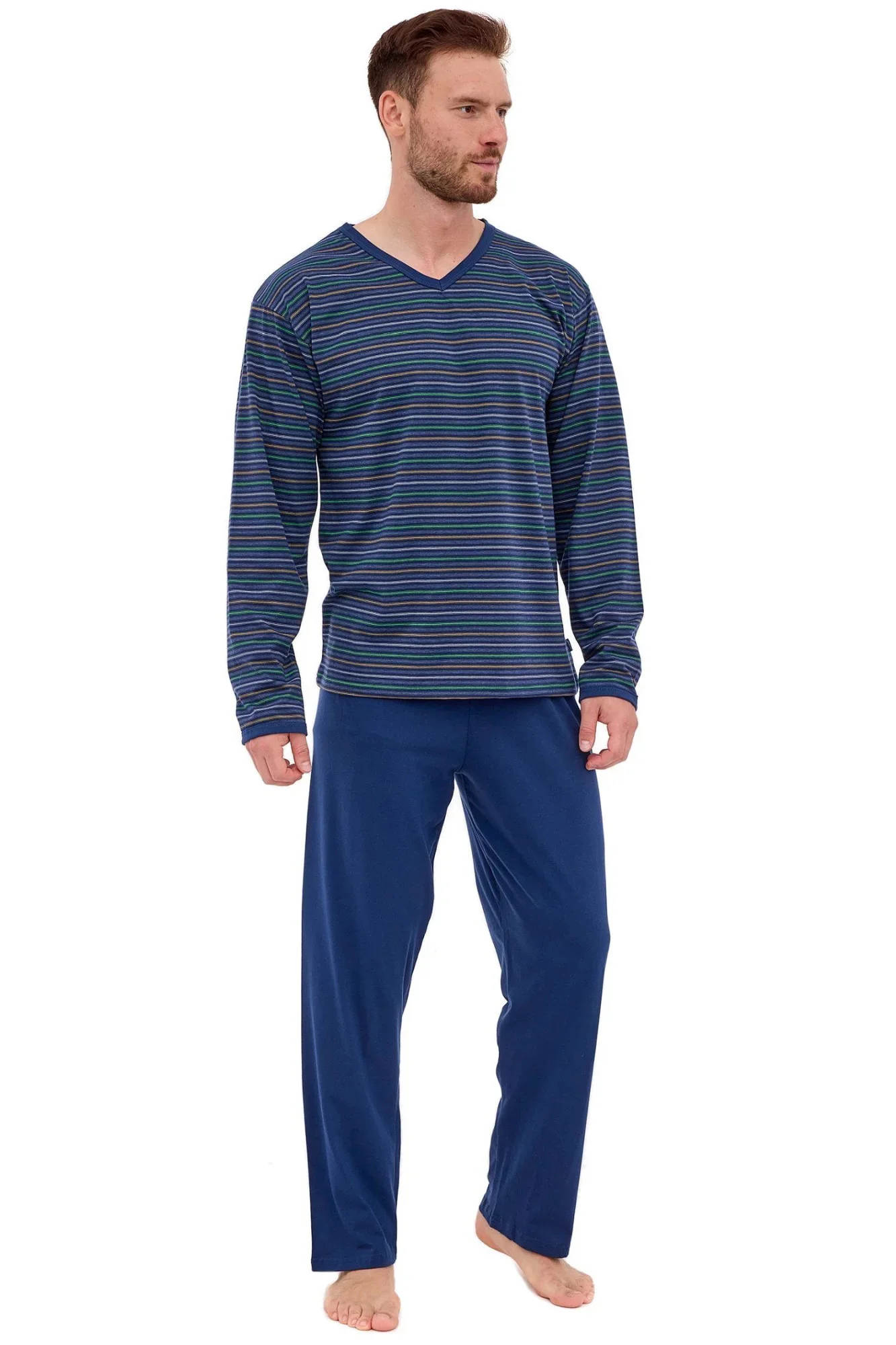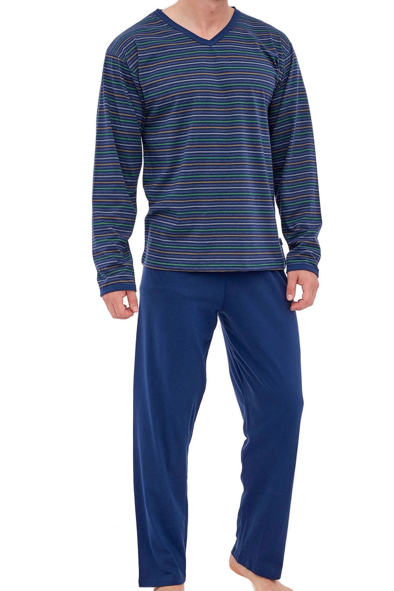 Pánské pyžamo 139/42 Various CORNETTE - z vysoce jakostní bavlny - pruhované tričko s dlouhými rukávy - pohodlné jednobarevné dlouhé kalhoty