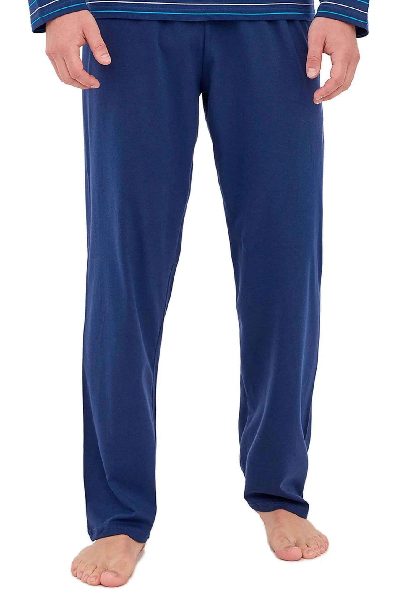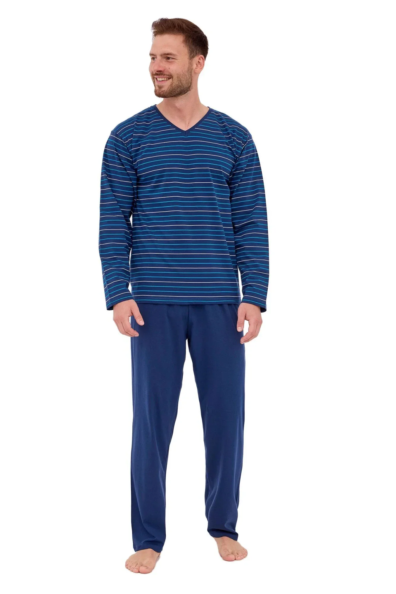 Pánské pyžamo 139/43 Various CORNETTE - tmavě modrá barva - z vysoce jakostní bavlny - pruhované tričko s dlouhými rukávy - pohodlné jednobarevné dlouhé kalhoty