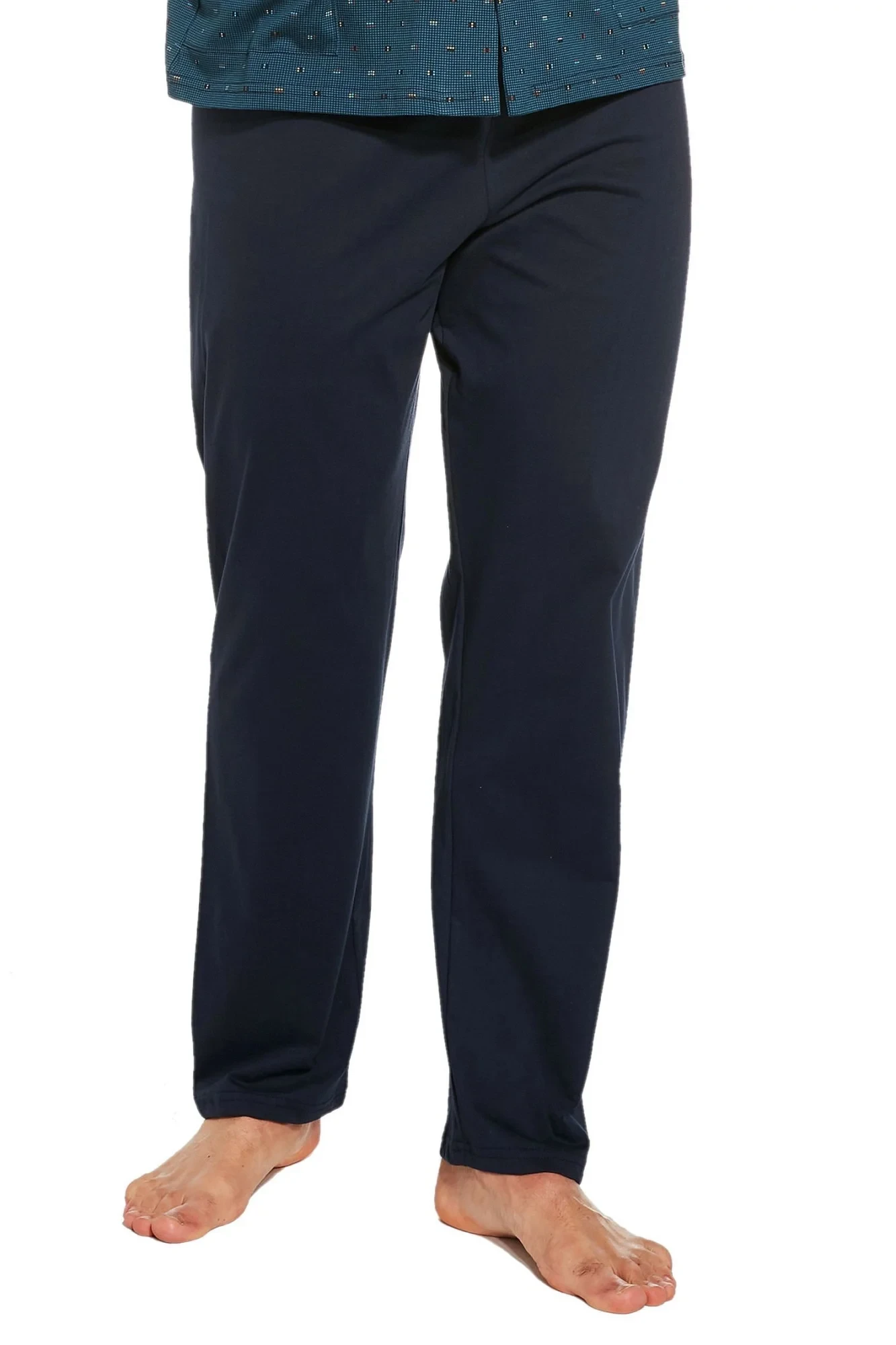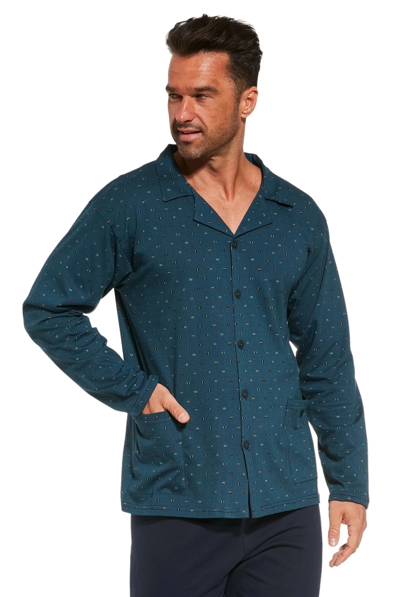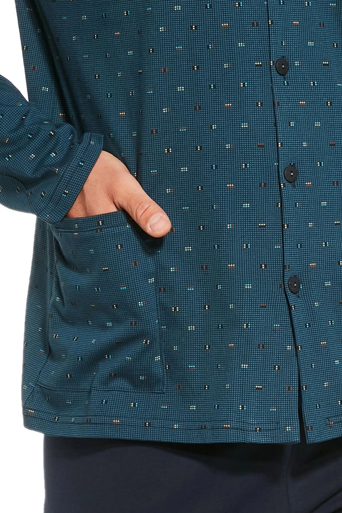 Pánské pyžamo 114/64 CORNETTE - je vyrobené z velmi kvalitní bavlny - tmavě modrá vzorovaná košile s dlouhými rukávy a kapsami - zapínání na knoflíky - pohodlné jednobarevné dlouhé kalhoty