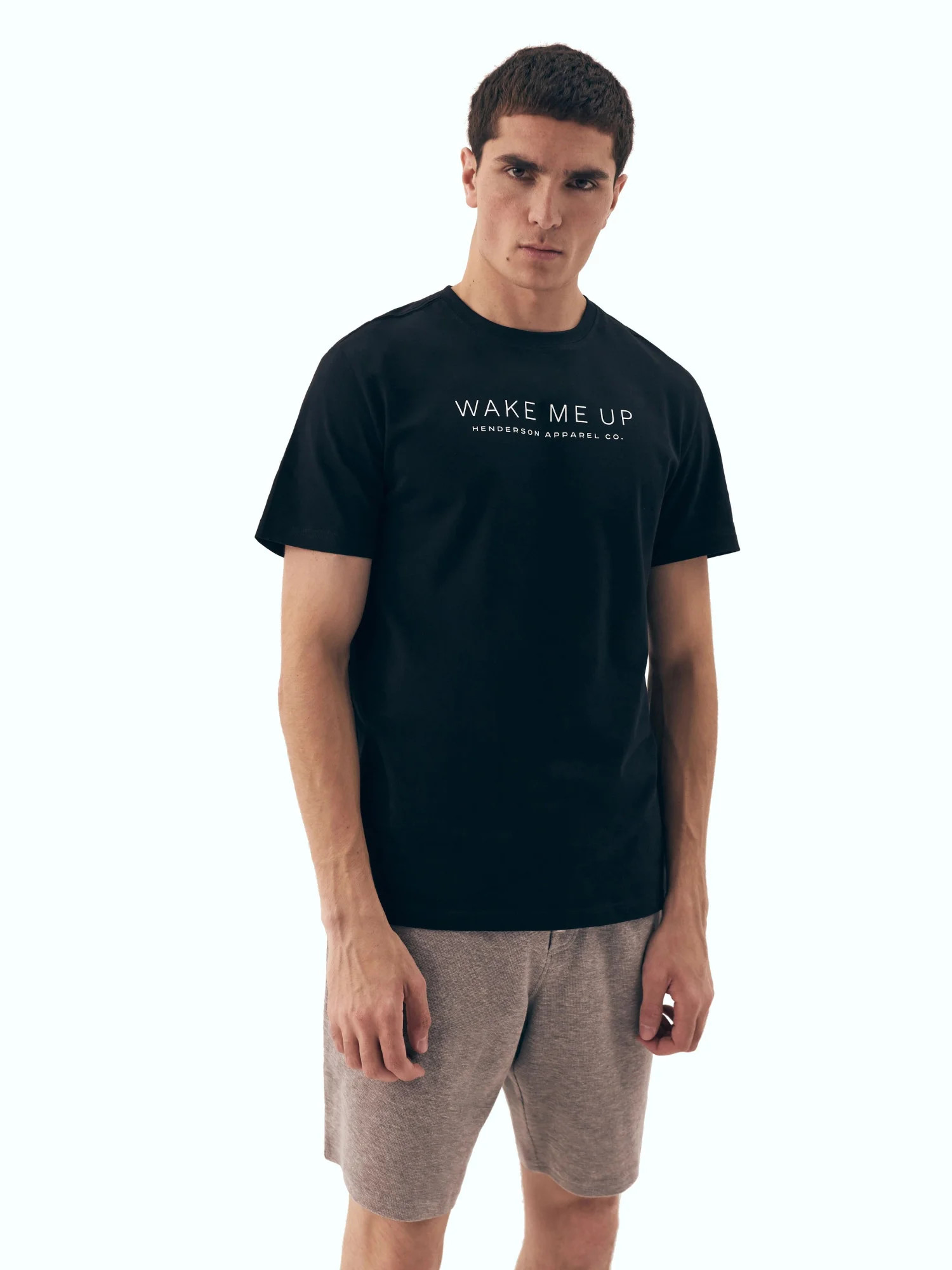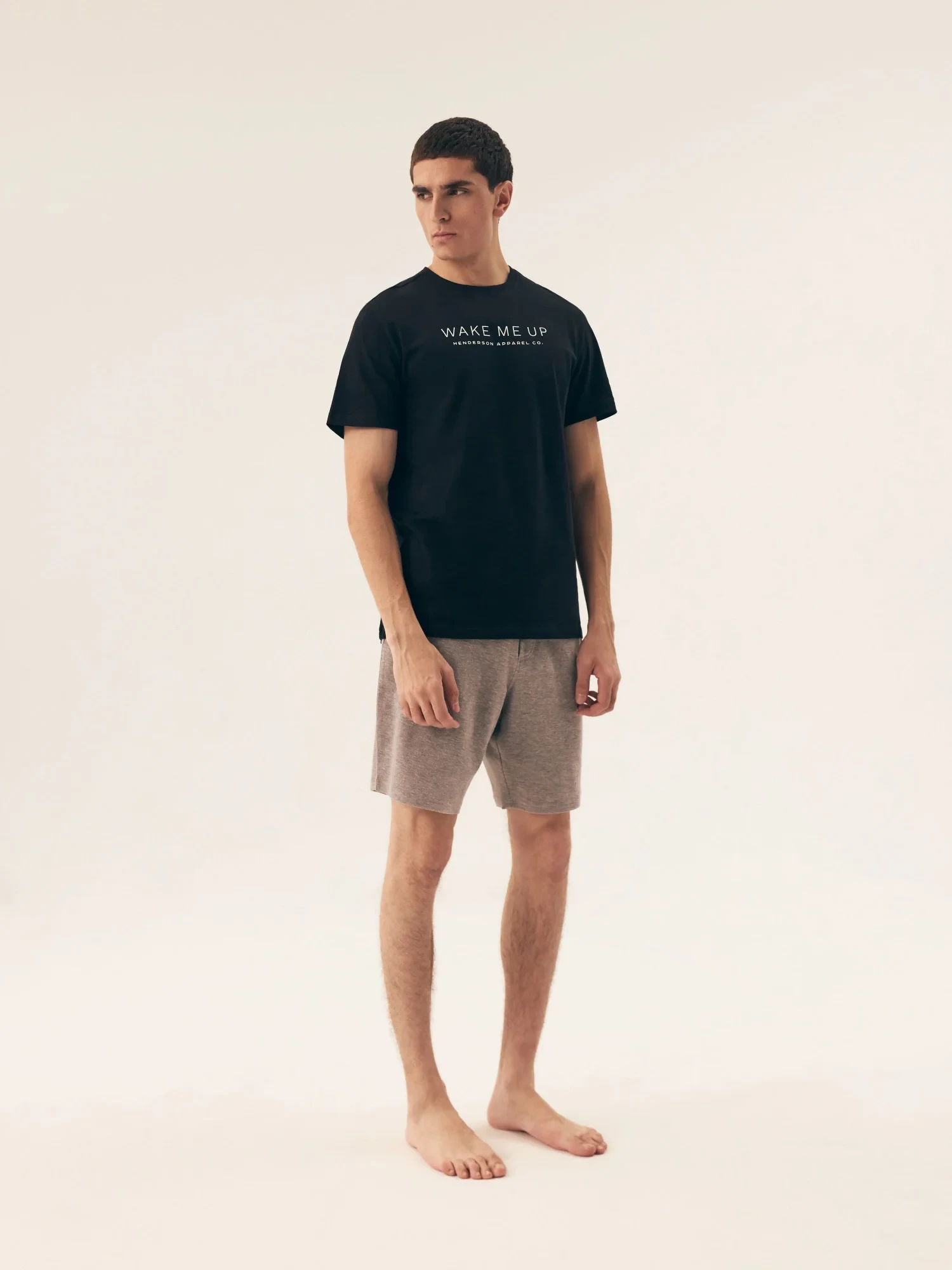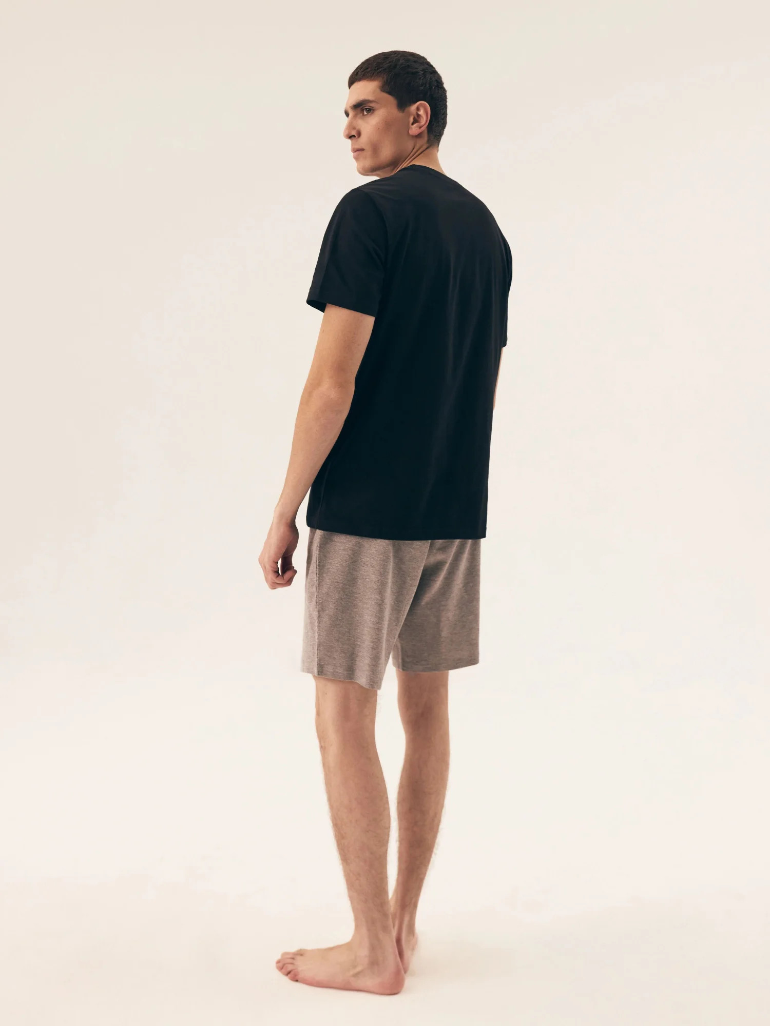 Pánské pyžamo 42634 Dare HENDERSON - z vysoce jakostní bavlny - černé tričko s krátkými rukávy - zdobené nápisem na přední straně - jednobarevné šortky - elastická guma se šňůrkou
