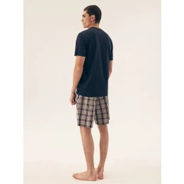 Pánské pyžamo 42617 Dexter HENDERSON - z vysoce jakostní bavlny - tmavě modré tričko s krátkými rukávy - zdobené kapsičkou na přední straně - kárované šortky světlé barvy - elastická guma se šňůrkou